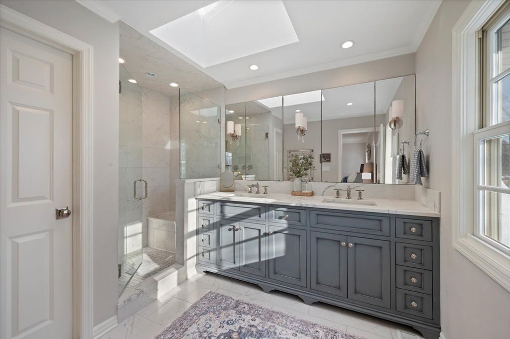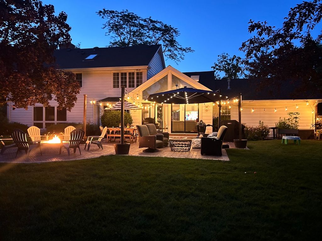 A rare opportunity tucked away on coveted Farm Road, this beautifully updated home sits on a generous .73-acre fully fenced lot, offering exceptional privacy and expansive outdoor space. The heart of the home is the stunning eat-in kitchen, featuring custom cabinetry, quartz countertops, premium Thermador and SubZero appliances, and upgraded lighting throughout. Open to the family room with vaulted ceiling and new sliding patio doors, the layout is ideal for both everyday living and entertaining, with seamless indoor-outdoor flow and picturesque views of the lush yard and spacious patio with new built in gas fire pit. The primary suite is highlighted by a gorgeous spa-like bathroom with a walk-in shower, bench seating, custom wood cabinetry, and high-quality fixtures. A first-floor office provides excellent flexibility and may easily function as a fifth bedroom. The finished basement adds valuable living space and includes a dedicated exercise room. Truly move-in ready, this home is ideally located with convenient access to the West Lake Forest Metra Station, along with nearby shopping and dining. The neighborhood is served by Everett Elementary School and Lake Forest High School, completing this exceptional offering in the heart of Lake Forest.