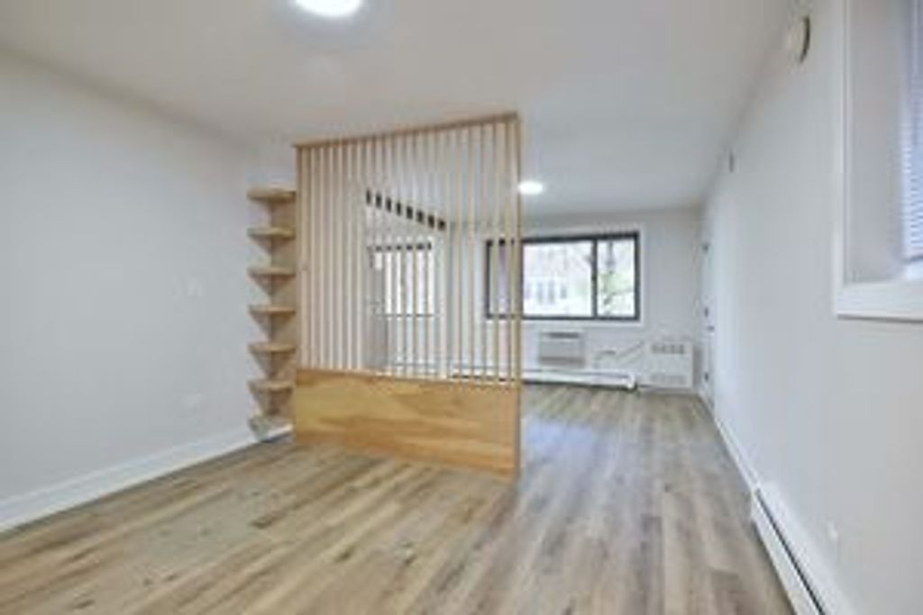 Studio condo featuring modern finishes throughout. The open-concept layout showcases a sleek kitchen with white shaker cabinetry, quartz countertops, subway tile backsplash, and stainless steel appliances, seamlessly flowing into the living/sleeping area. Luxury vinyl flooring and recessed lighting add a contemporary feel and enhance the sense of space. A custom wood slat divider provides stylish separation without sacrificing light or openness-perfect for defining living and sleeping zones. The updated bathroom features modern tilework, a contemporary vanity, and clean, timeless finishes. Freshly painted with ample storage and a functional layout ideal for owner-occupants or investors. Convenient location close to transit (Ridge Metra Station), shopping, dining, and neighborhood amenities. Move-in ready and beautifully finished. Assigned parking space #13 included in price.
