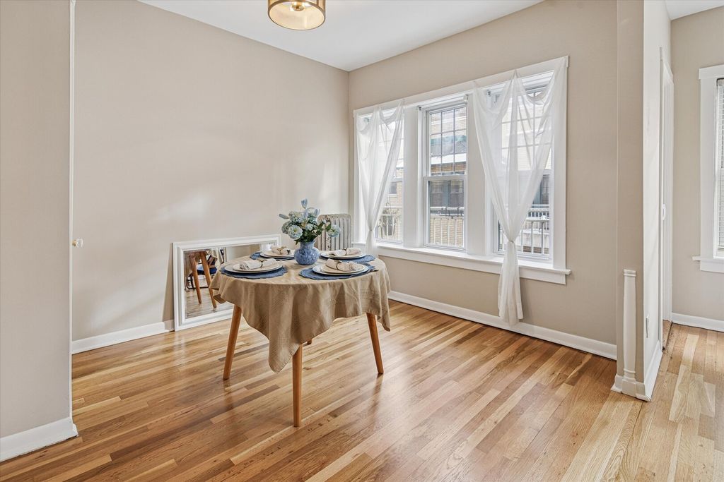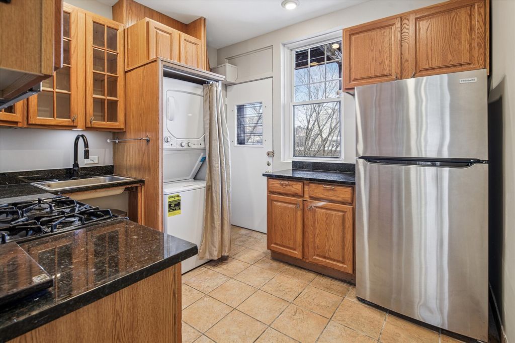 Charming, vintage, top floor one-bedroom condominium available in an historic courtyard building in the popular Buena Park neighborhood. This south-facing unit is filled with natural sunlight and overlooks a leafy, well-maintained courtyard. Newly painted and just-refinished oak hardwood floors throughout. The living room has beautiful built-ins around a cozy wood-burning fireplace. A formal dining area is adjacent to the living room. A small balcony that overlooks the courtyard is just off the living/dining area. The kitchen has granite countertops and brand-new stainless microwave, refrigerator. Brand new washer-dryer. There is a back porch area just off the kitchen. The bedroom has a barrel-vaulted ceiling and large triple window, and can easily accommodate any sized bed. This building is pet-friendly, and features additional shared storage, a bike room, and large laundry room. Great Buena Park location close to transportation (buses and the Red Line), shopping (Target, Aldi, Jewel), dining and coffee shops. The Lakefront and Montrose Harbor, golf course, tennis courts all nearby. Assessment includes heat and cooking gas. Property sold As-Is.