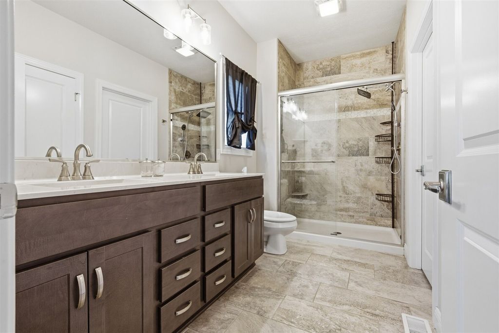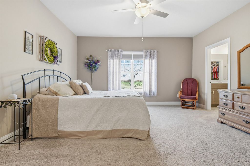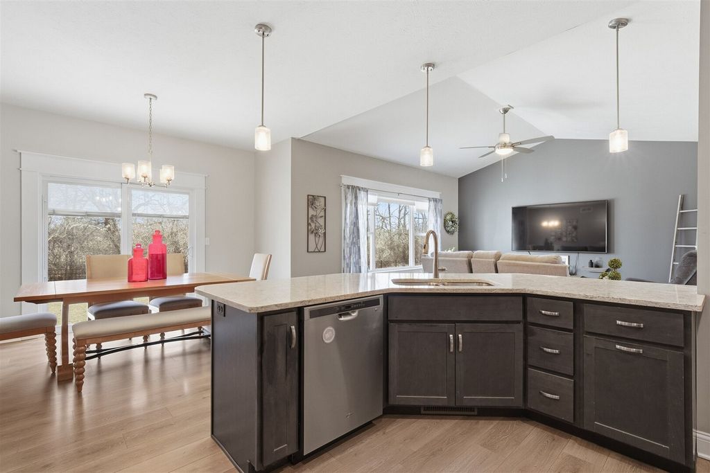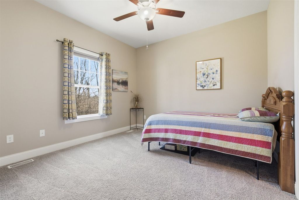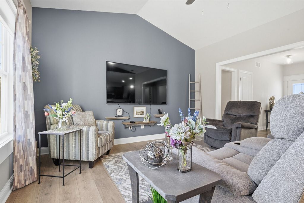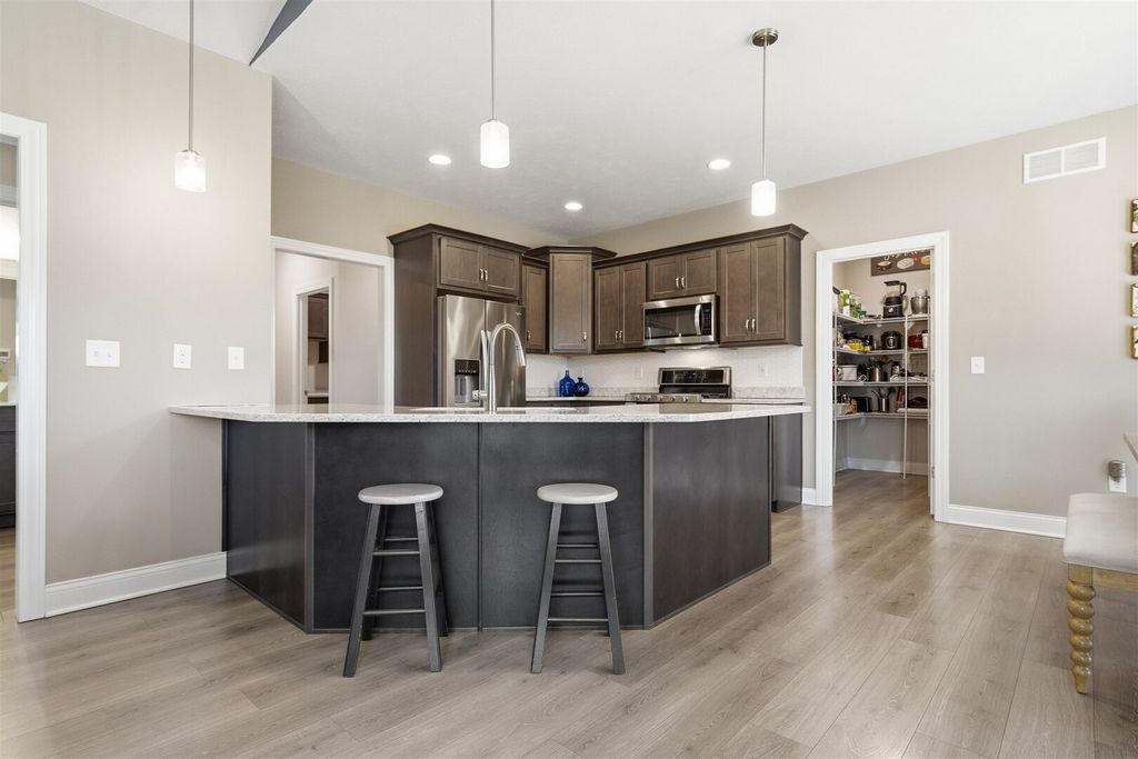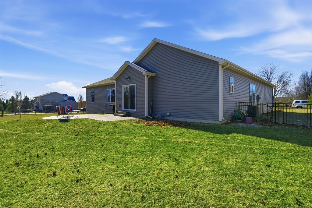 Vaulted /open floorplan offers 1st floor laundry & master suite! Upgraded kitchen center island sink,large walk-in pantry.3 car attached garage has extended bay.Jack & Jill bath, walk-in master tiled shower.Extra high ceilings in full basement finished family room,large 35x25, plus look out windows in area for additional future bedroom. Only 5 years young, home is on its own private septic system, not part of the HOA system.Fenced yard, stamped patio, Premium location and lot. Upgraded Millwork through-out home includes modern trim with overlap, oversized base and casing plus mullion window accents.Please see tour-3D floor plan.