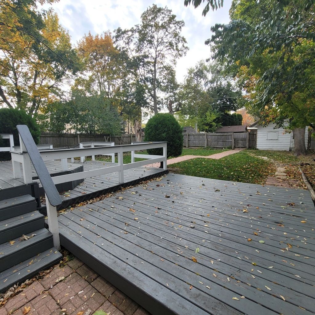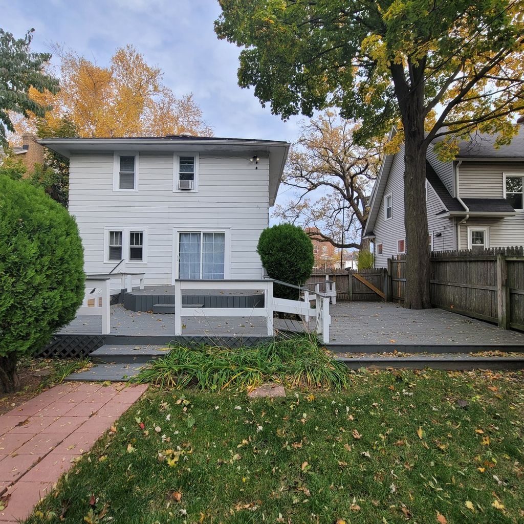 Charming two-story home with classic appeal, featuring a traditional front porch and decorative shutters. Step into the welcoming foyer, then into the bright living room adorned with hardwood floors, a brick wood-burning fireplace, and large windows that bathe the space in natural light. Adjacent is the formal dining area with plenty of windows and a sliding door leading to an impressive three-tier deck...perfect for entertaining, enjoying a fire, or relaxing outdoors. A full basement adds ample storage. Outside, you'll find a 1-car garage, driveway through the alley, a shed for extra storage, and a fenced yard...ideal for kids, pets, or weekend barbecues. This home is being offer "as is".