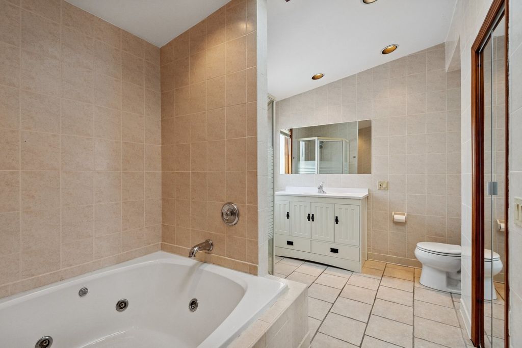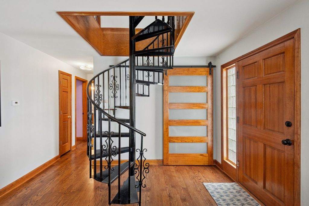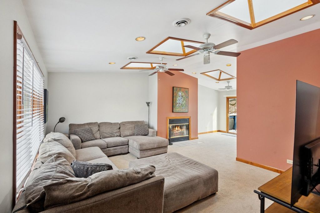 Beautiful, expansive 5-bedroom, 3-bath single-family home situated on an oversized lot. This thoughtfully designed residence offers generous living space, a finished basement, and an oversized 3-car garage, all complemented by a large, private yard ideal for gardening and entertaining. The updated kitchen features granite countertops, a center island, soft-close cabinetry, and stainless steel appliances. A spacious living room with a wood-burning fireplace flows seamlessly into the dining area. The main level also includes two bedrooms and a full bath, with a spiral staircase leading to the upper level, where you'll find three additional bedrooms and two full baths. The spacious primary suite offers an ensuite bath with a large soaking jacuzzi, skylights, a fireplace, and access to a large 20' x 10' private deck. Currently used as a large, comfy family room. Basement has laundry with in-unit sink. Zoned heating and cooling. 3-car garage has room for a workspace plus an extra side parking pad accessible from alley. Recent upgrades: Electric Heat Pump (2025), Landscaping and Land Grading (2023), Drain System & Rerouted Downspouts (2023), Sump Pump (2022), Roof (2017), Kitchen Remodel (2017). A rare opportunity to own a spacious home with modern updates.