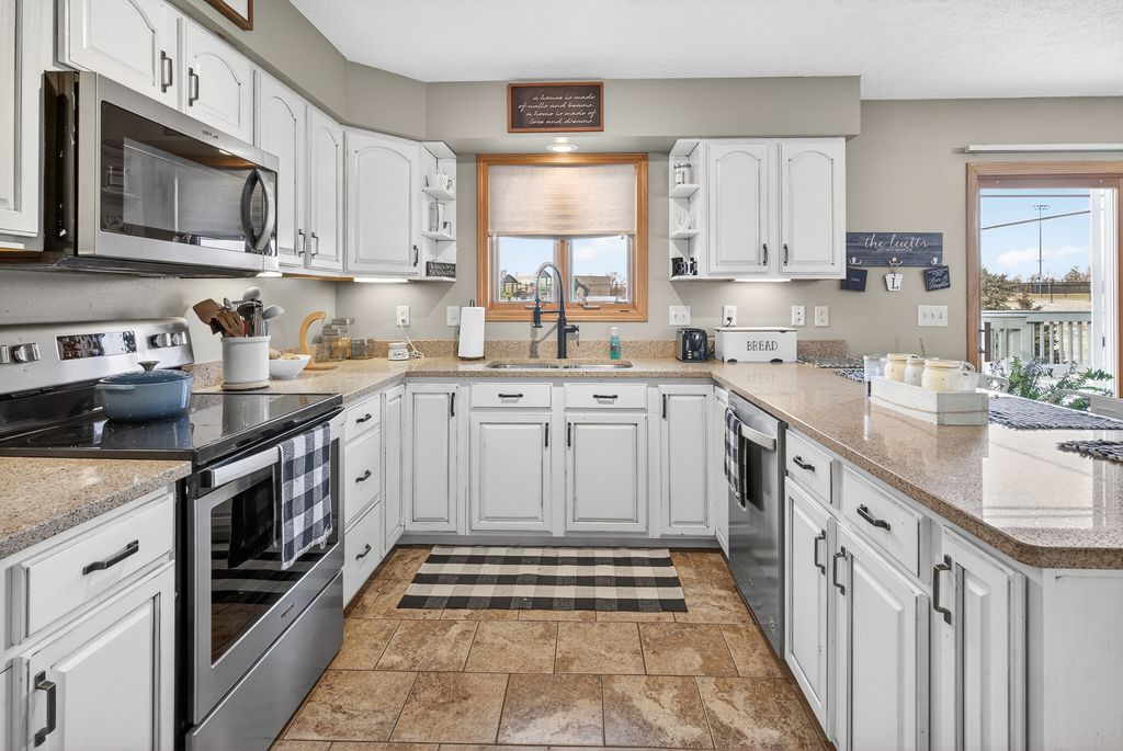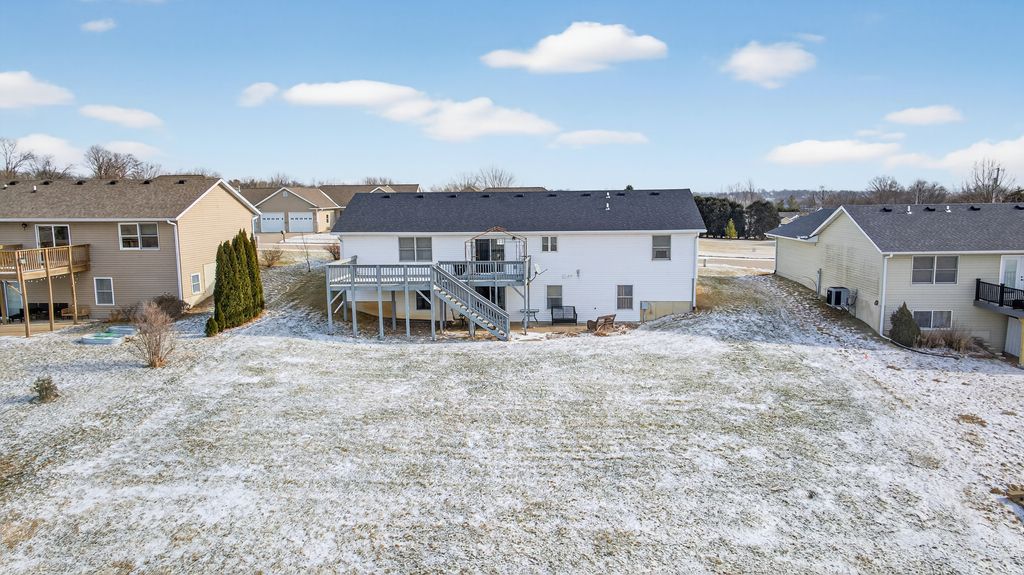 Welcome to this 4 bedroom, 3 bath ranch home located next to Eagle Heights school. This home features a dedicated main floor laundry room, 3 main level bedrooms 2 with large walk in closets, a living room open to the kitchen with a breakfast bar, dining area that leads onto the large back deck, and a primary bedroom that is separated by floor plan from the two guest bedrooms. The finished basement is a full walk-out daylight basement with a fourth bedroom that also has a large walk in closet, generous sized family room, and large storage and utility area. The oversized and deep 2 car garage is attached. This home is a must see!