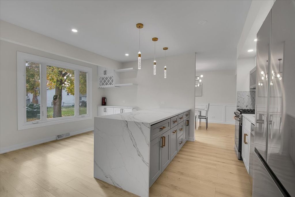 Welcome to this beautiful two-story home offering 3,000sq. ft. of living space, featuring 5 bedrooms and 2.5 bathrooms. The main level features elegant hardwood laminate flooring, a bright living room, a comfortable family room, and a modern kitchen equipped with brand-new stainless steel appliances, sleek quartz countertop, and a large peninsula perfect for dining or entertaining. Upstairs, you'll find hardwood floors throughout along with two full modern bathrooms, including one inside the specious master suite for added privacy and comfort. The newly finished basement features luxury vinyl flooring and an additional bedroom- perfect for guests, a home office, or a recreation area. Located within the highly rated Hinsdale South High School, this home offers modern updates, style, and an excellent location- close to shopping centers, restaurants, and major highways. Don't miss the opportunity to make it yours!