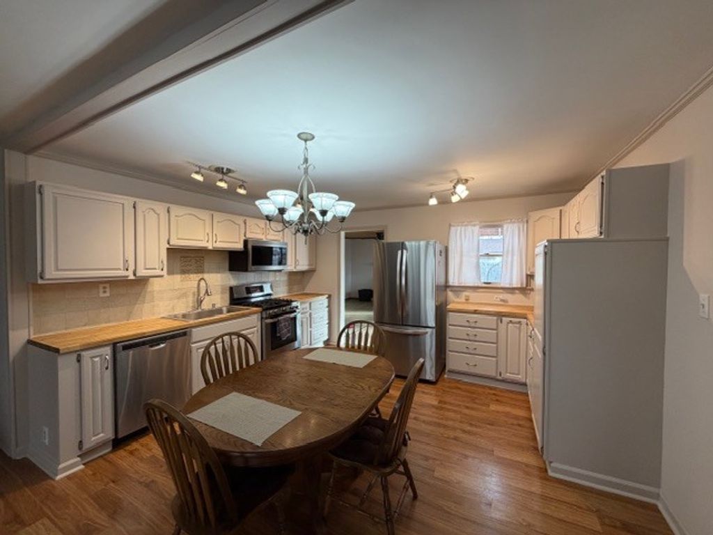 WHAT AN INCREDIBLE HOME THAT HAS BEEN OWNED BY THE SAME FAMILY FOR DECADES! UPDATED KITCHEN WITH RAISED PANEL WHITE CABINETRY/BUTCHER BLOCK STYLE COUNTER TOPS AND STAINLESS APPLIANCES. 2 FULL BATHS THAT HAVE BOTH BEEN UPDATED, FAMILY ROOM WITH UNIQUE WOOD CEILING AND WOOD BURNING HEATILATOR STYLE FIREPLACE. SLIDING DOORS FROM THE MASTER BEDROOM AND FAMILY ROOM TO THE HUGE WRAP-AROUND DECK. THE ADDITION OF THE LARGE BEDROOM AND BATH IN THE REAR OF THE HOME WOULD MAKE AN IDEAL PRIMARY BEDROOM SUITE OR WOULD CERTAINLY WORK AS AN IN-LAW ARRANGEMENT. THE FENCED REAR YARD WITH HUGE DECK/STORAGE SHED AND NUMEROUS SCHRUBS AND PERRENIALS IS A BEAUTIFUL RETREAT. THE HVAC SYSTEM IS APPROX. 12 YEARS OLD, RANGE APPROX. 6, DISHWASHER APPROX. 5, REFRIGERATOR APPROX. 3 AND MICRO IS NEW! STAINLESS KITCHEN APPLIANCES, WOOD LAMINATE FLOORING IN MANY ROOMS, OVERSIZED (EXTRA DEEP) ATTACHED GARAGE, AND MUCH MORE. DON'T HESITATE ON THIS HOME OR IT WILL BE GONE!
