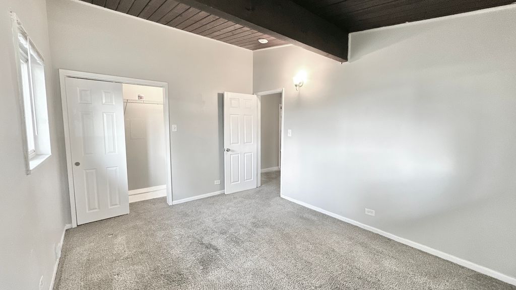 This charming home with modern updates is sure to wow you with its vaulted ceilings and exposed wooden beams! With 3 bedrooms & 1 bathroom, this ranch home in Dolton is anything but ordinary. You're greeted in the living room with a striking floor to ceiling stone fireplace that is sure to impress. Soft carpeting creates a cozy yet sophisticated ambiance. The updated kitchen pairs crisp white cabinetry with durable vinyl plank flooring, ample counter space, and sleek black appliances. Just off the kitchen is your laundry area along with your water heater and furnace. All three bedrooms offer generous natural light, fresh neutral finishes, and plush carpeting for a restful retreat. The full bath features timeless white tile, a rain showerhead, and a modern vanity. Out back, you have tons of shade and a fully fenced yard for those summer barbecues or quiet mornings. A detached 2 car garage, covered carport, and low-maintenance exterior give you added convenience and curb appeal. Come take a look before its gone. Schedule a showing today!