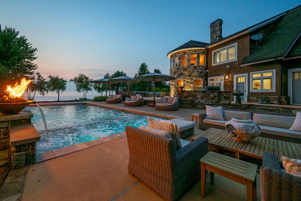 This remarkable waterfront estate is thoughtfully positioned on 2.75 acres to ensure privacy while capturing sweeping bayside views & sunsets! Exceptional craftsmanship is paired with resort-level amenities, including a saltwater pool, full fitness center, and an on-site outbuilding for boat storage. The property offers a rare balance of seclusion and effortless access to Door County's most charming villages, marinas, fine dining, boating, and shopping. Minutes to everything, yet worlds away, this is a waterfront legacy to secure just in time for summer.