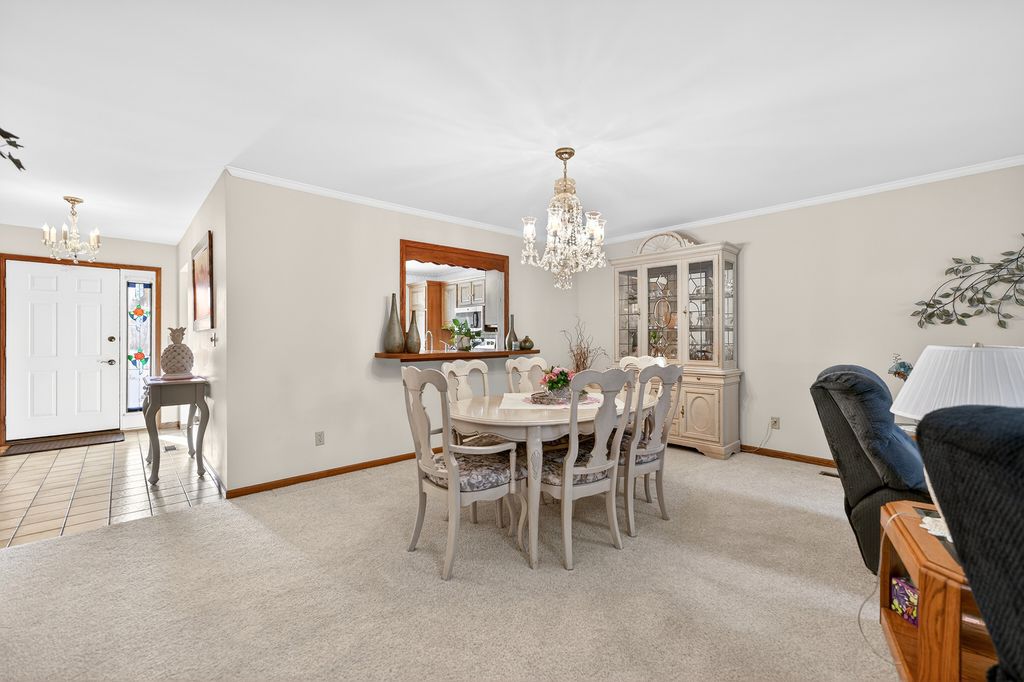 This is "The One!" GREENWOOD ACRES RANCH Condo featuring open floorplan, eat-in kitchen with pass-thru to the Great Room/Dining and 4-season heated & cooled Sun Porch that overlooks mature trees and occasional deer and other wildlife to enjoy! You'll immediately appreciate the natural light in this lovely home which beams through 2 skylights and the Sun Porch with updated windows providing a clear sightline from the kitchen all the way to the back yard. You'll never miss the action while cooking and absolutely love the roll out pantry shelving and undercabinet lighting. Down the hall is an unexpectedly large guest bedroom with a well-designed full bath across the hallway, complete with a laundry room including a wash sink and hanging rack - all tucked behind doors to keep things tidy! SPACIOUS Primary Bedroom sits at the end of the hallway and boasts a built in desk, walk-in closet and ensuite Bath that's sure to please! Unfinished basement is perfect for storage, workshop, or finish to add more living space. "Must-have" 2 Car Garage and golf cart access to Kishwaukee Country Club. Furnace and water heater are 3 years new and Pella windows have built-in mini-blinds for easy cleaning and privacy. All appliances and drinking water filtration system stay. No more shoveling snow or mowing grass because this is YOUR TIME! Truly exceptional home near shopping, medical, wellness center, parks, golf, restaurants, banks - EVERYTHING you want and need!