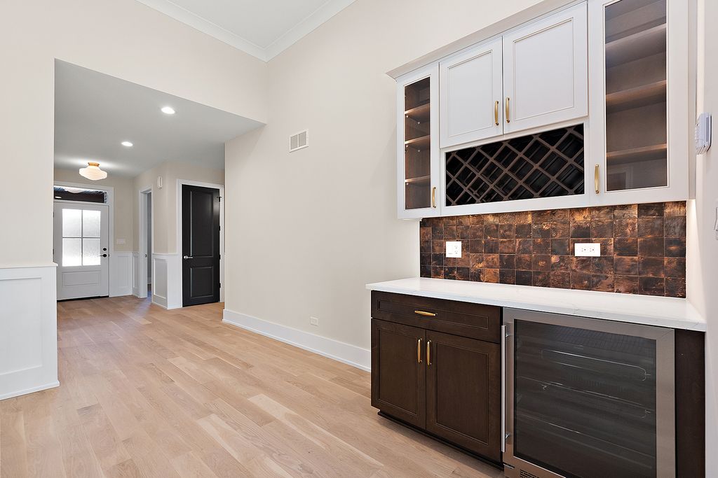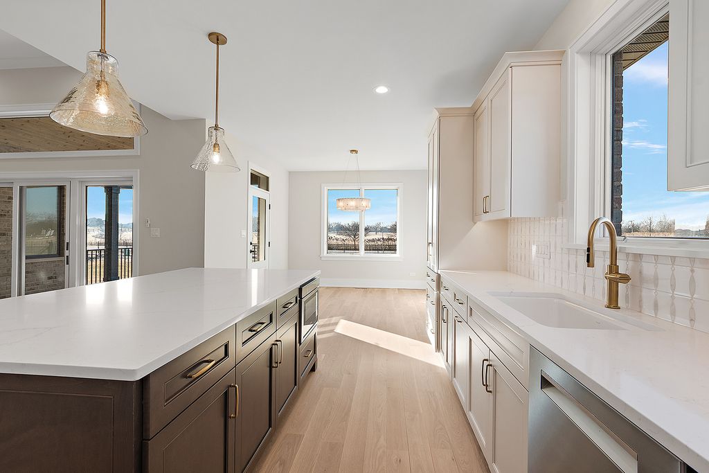 Ready for immediate delivery. This luxury, maintenance-free ranch townhome community is set in a prime location at 153rd and Wolf, offering sophisticated living for those seeking to downsize without sacrificing style, comfort, or convenience. Designed for buyers who appreciate elevated finishes and design, each residence delivers a true lock-and-leave lifestyle. The community is minutes from Orland Park's finest amenities, including upscale dining, boutique shopping, fitness and recreation, as well as premier medical facilities. So many walking options including, Centennial Park, Orland Park Nature Center, and Grassland. Winter walks available at Orland Square Mall and the Sportsplex. These exceptional homes feature open, versatile floor plans enhanced by soaring 12-foot ceilings, 9-foot lookout basements with open staircases, and craftsmanship that stands apart. Exterior includes a concrete driveway, oversized 2-car garage with epoxy flooring, and Lake Michigan hot and cold water hookups perfect for spot-free vehicle care. Inside, every detail reflects quality. The amped mudroom is an example of client's needs answered. 2 closets to house all your belongings. Washer and dryer with cabinetry, sink and countertop for folding clothes. Planners desk near window for natural light. A space designed to be the central hub of the home. White oak hardwood flooring, custom cabinetry, quartz surfaces, Pella windows, Kohler fixtures, and Decora lighting create a clean, modern aesthetic. Luxurious primary suites include spacious walk-in closets and spa-inspired baths with curb-less showers, built-in seating, and handheld sprayers. Entertaining is effortless with a covered outdoor deck, concrete patio and a stylish dry bar complete with beverage refrigerator. $831,496 As Shown
