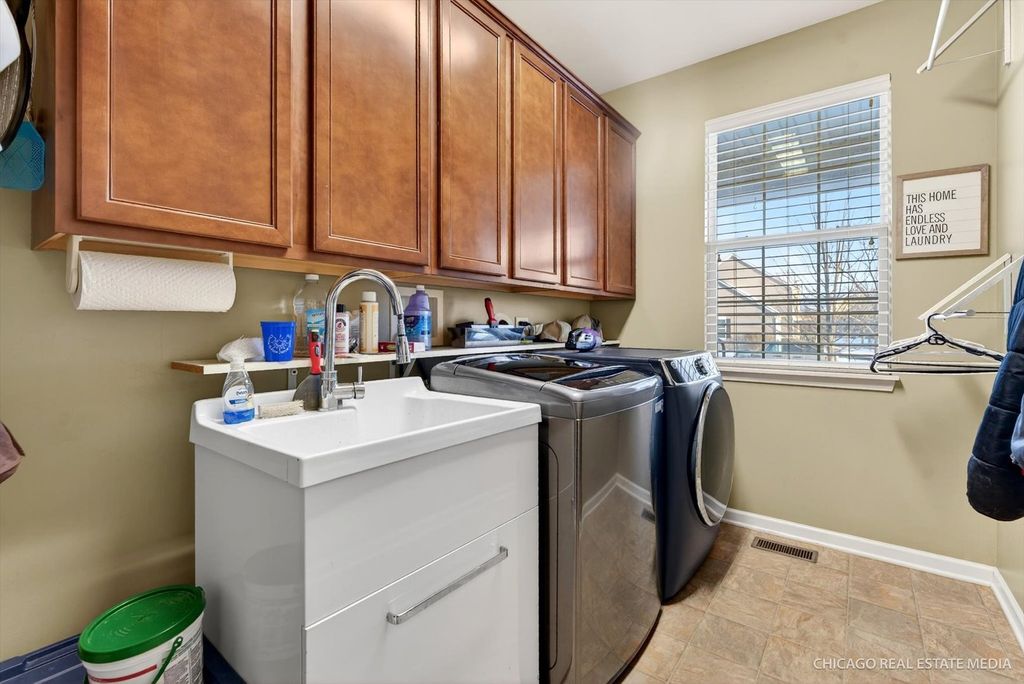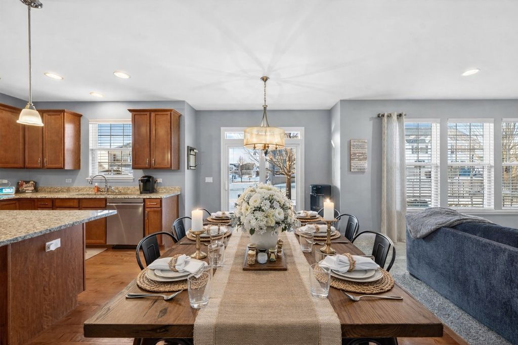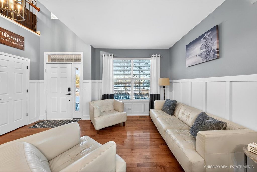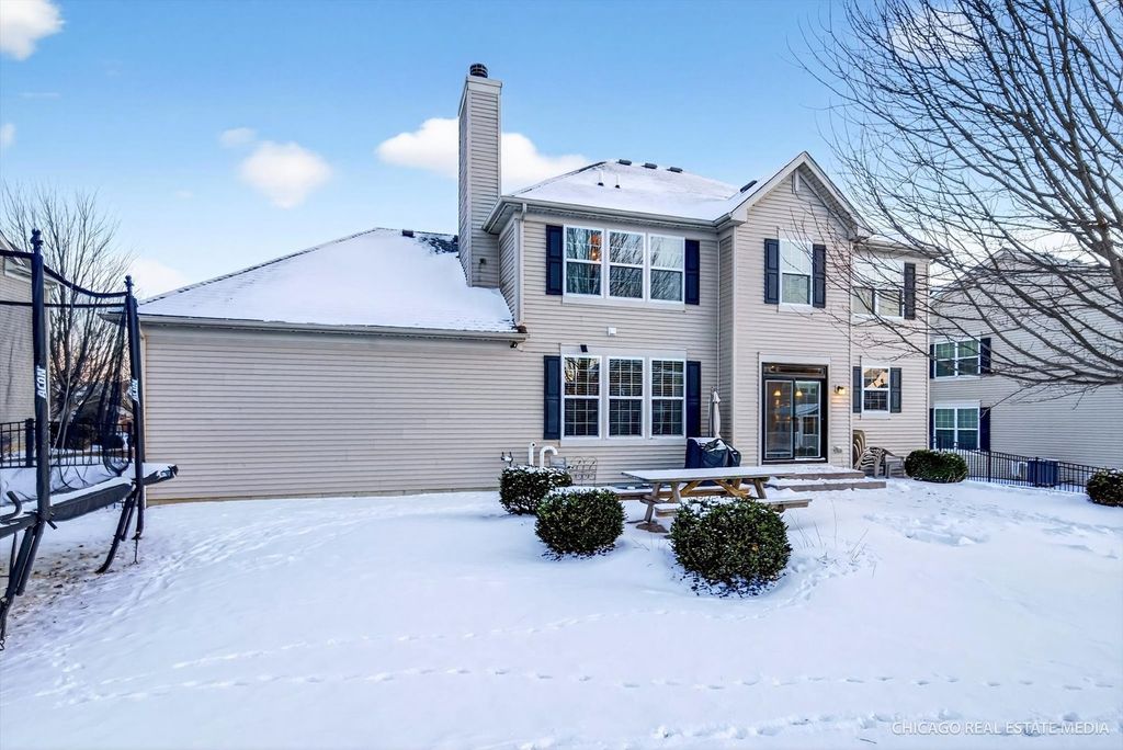 Welcome to this beautifully maintained home in the highly sought after Talamore subdivision of Huntley! This spacious home offers an ideal blend of modern design, functional living, and resort-style community amenities. Step inside to a living room and dining room with elegant wainscoting, adding timeless character and architectural detail to the space. The gourmet kitchen includes high end appliances, granite countertops, and cabinet space galore with an eat-in kitchen and island seating. The open family room features custom shelves and a gas fireplace perfect for relaxing or hosting. On the main level you will also find a custom home office with french doors and high end built-ins. Upstairs the primary suite features a tray ceiling, en-suite bathroom with large jacuzzi tub, and a walk-in closet with custom organizers. Upstairs you will also find three more generously sized bedrooms all with professional custom closet organizers and another full bathroom. The unfinished basement is perfect for adding another family room, bedroom, or play area. Custom built-ins allow for lots of basement organization. Outside is a patio and fully fenced-in yard that is perfect for entertaining and relaxing outdoors. Located in the highly rated Huntley School District and close to parks, trails, shopping and dining. Residents enjoy access to Talamore's clubhouse, pool, fitness, center, parks, community events, and more! Schedule your showing today and make this home your new year's resolution!