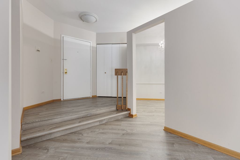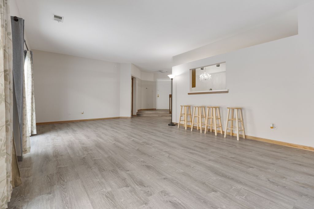 Welcome home to this meticulously maintained, conveniently located, first floor end-unit. This 2-bedroom, 2-bathroom residence offers the rare advantage of dual primary suites, each with its own attached bath and private patio access through new doors (2024) - a unique feature. Step inside to an open entry with a subtle step-down and a spacious closet, leading into a light-filled living and dining area. Vinyl wood-look flooring (2023) runs throughout, creating a seamless, modern feel. The living room/dining room combo is anchored by an oversized wall of sliders that flood the space with natural light and open to a charming paver patio. The kitchen features stainless steel stove, refrigerator, and microwave (2023), an ample eating area highlighted by a sparkling crystal chandelier, and a thoughtfully designed pass-through cutout that brings in light while connecting to the living space. Full-size laundry room with newer high-end washer and dryer (2023). The primary suite offs a walk-in closet, newer 6-panel doors, patio access, and an updated bath with a marble-topped vanity and newer fixtures, plus a separate toilet and tub area. The second bedroom - located on the opposite side of the unit for added privacy - includes double closets, patio access, and an attached bath also accessible from the main living area, featuring a Coran-topped vanity, updated toilet, and fixtures. All of this in a fantastic location - just minutes to the Metra train, highways, restaurants, shopping and Wintrust Field. Investor friendly - No CAPS. A truly move-in ready home offering comfort, privacy, and unbeatable convenience - don't miss it!