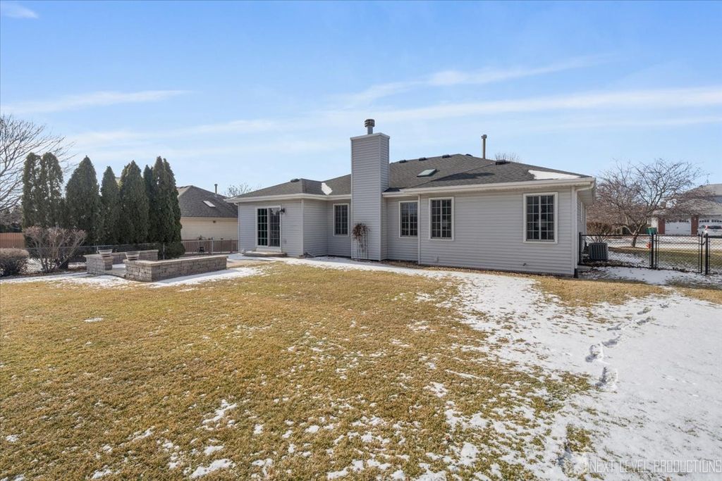 Exceptional Lakewood Estates ranch home well-cared for by original owner featuring 3 bedrooms, 2 full bathrooms, 1st floor laundry, 2 car garage, updated kitchen and basement. Entertain in your remodeled eat-in kitchen with white cabinets, granite countertops, island, tiled backsplash, luxury chevron vinyl waterproof flooring, stainless steel appliances, and custom drapes. Relax and unwind in spacious living room with gas fireplace and custom builder's layout added additional square footage. Separate dining room is perfect for your next holiday party. Very desirable 1st floor laundry. All bedrooms include walk-in closets. Master Bedroom bathroom features walk-in shower. Neutral paint throughout. Your backyard retreat is complete with brick paver patio, fully fenced yard and professional landscaping. Updates: Front Door (2025), East windows and kitchen slider replaced, 50-year roof (2018), Skylights (2018), A/C (2019), Hot Water Heater (2016), Furnace serviced annually and heat exchange replaced. Great location with no neighbors in the back and open space. Close to I-55 and I-355, schools, retail shopping, restaurants, and parks.