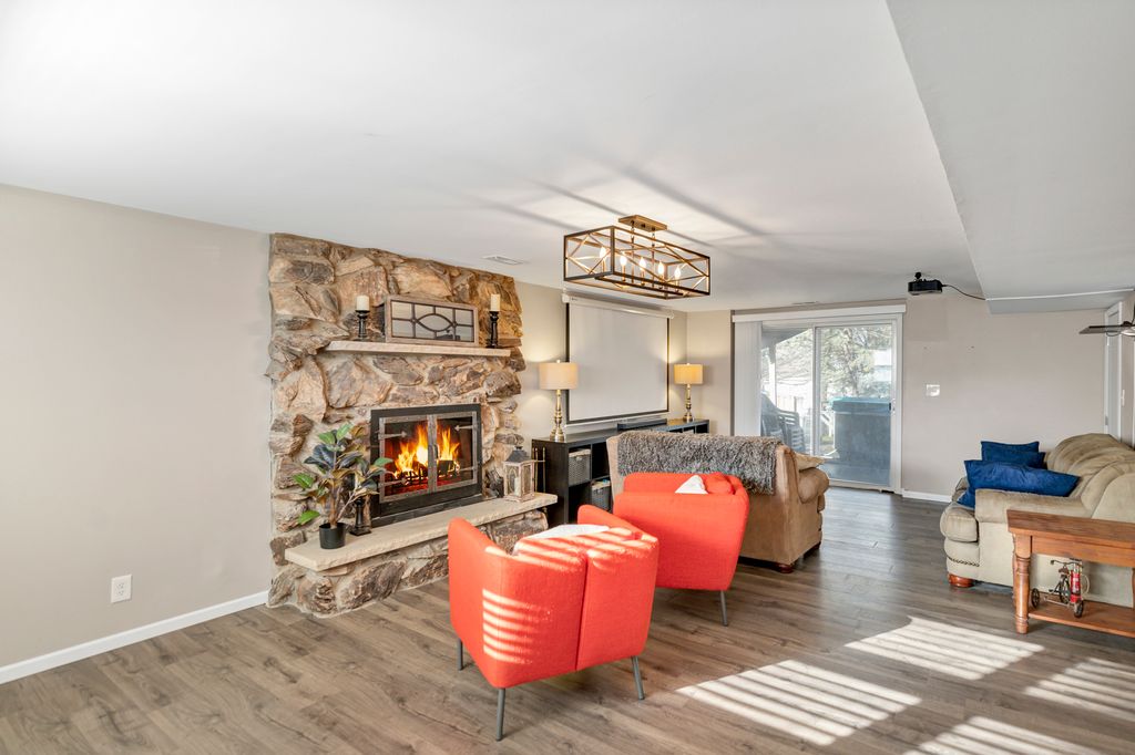 Highest and best is due by January 26th at 3 pm. **Back on the market due to buyer getting cold feet and walking away prior to inspection - Beautifully updated and well maintained, this 3-bedroom 2.5 bath raised ranch in desirable Lake in the Hills Estates feels welcoming from the moment you arrive. From the inviting entryway, step up to a spacious and bright living room that opens to the dining area with a slider to the patio-perfect for everyday living and entertaining. The updated kitchen boasts stainless steel appliances and range hood, a separate cooktop and built-in oven, white cabinetry, tile backsplash, and a planning desk. Convenient half bath for guests too! Down the hall is the primary bedroom with an en-suite bath and two additional bedrooms. The finished walk-out lower level offers a large family room with a cozy stone fireplace, projector and screen are included and are perfect for movie nights, and a slider to the outdoor space, plus a full bath and laundry room with sink. Great outdoor space with a deck that leads to a hot tub overlooking the fenced yard. Shed for extra storage. Ideally located near Randall Road, shopping, and restaurants, this home truly checks all the boxes.