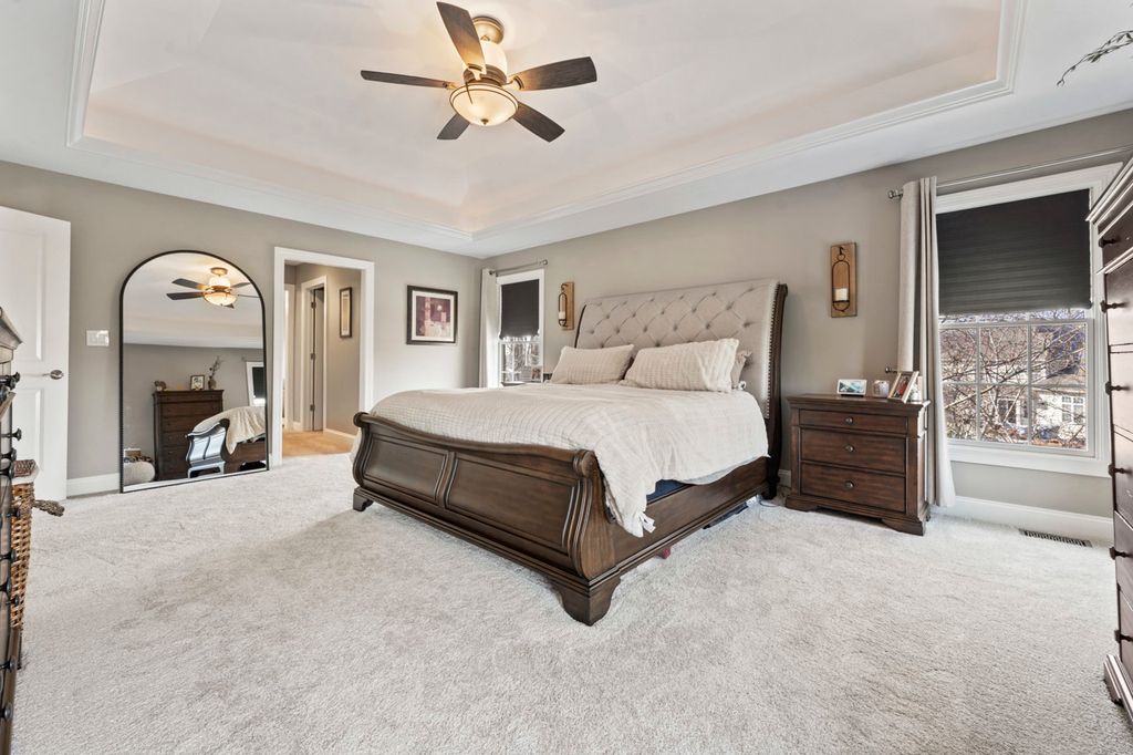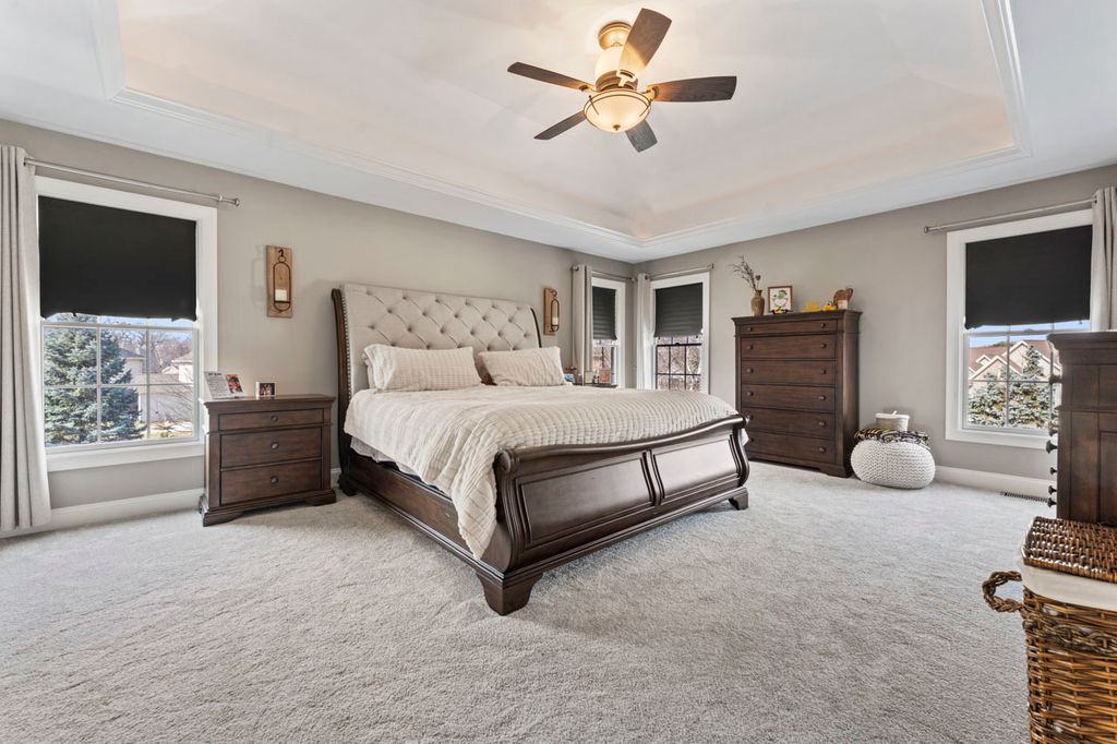 Get ready to fall in love! This impeccably maintained 4 bedroom custom home is ready for it's next owners! Offering over 5,200 sq. ft. of total finished living space (3,500 above ground/1,700 below), there is space for everyone. The impeccable details throughout the home impress, from the Brazilian cherry hardwoods to the two-sided fireplace, to the gourmet kitchen featuring a double oven and beverage center, every inch of this home screams quality. Heading upstairs, a peaceful primary suite awaits you and offers space to unwind! Three additional large bedrooms and a full Jack & Jill bath round out the upper level. If that isn't enough, the finished basement is an entertainer's dream! Offering the opportunity to enjoy the latest binge worthy show, work out, and catch up around the bar! Add to that a newly added bath & flex space that allows for whatever fits your lifestyle; wine/whiskey/gaming/video call room or reading nook, the decision is yours! Outdoor enthusiasts will appreciate the beautiful updated low maintenance landscaping and the stunning 12x14 patio pergola, perfect for summer nights. This home is situated in the beautiful River Crossing neighborhood. Conveniently located minutes from I-55 & I-80, as well as Rte. 59. Rivers Edge Park is located within the community and is poised to be a hub of activity for all of your recreational needs...volleyball, river access, playground, zip lines, ninja course and gardens! This home truly offers it all!