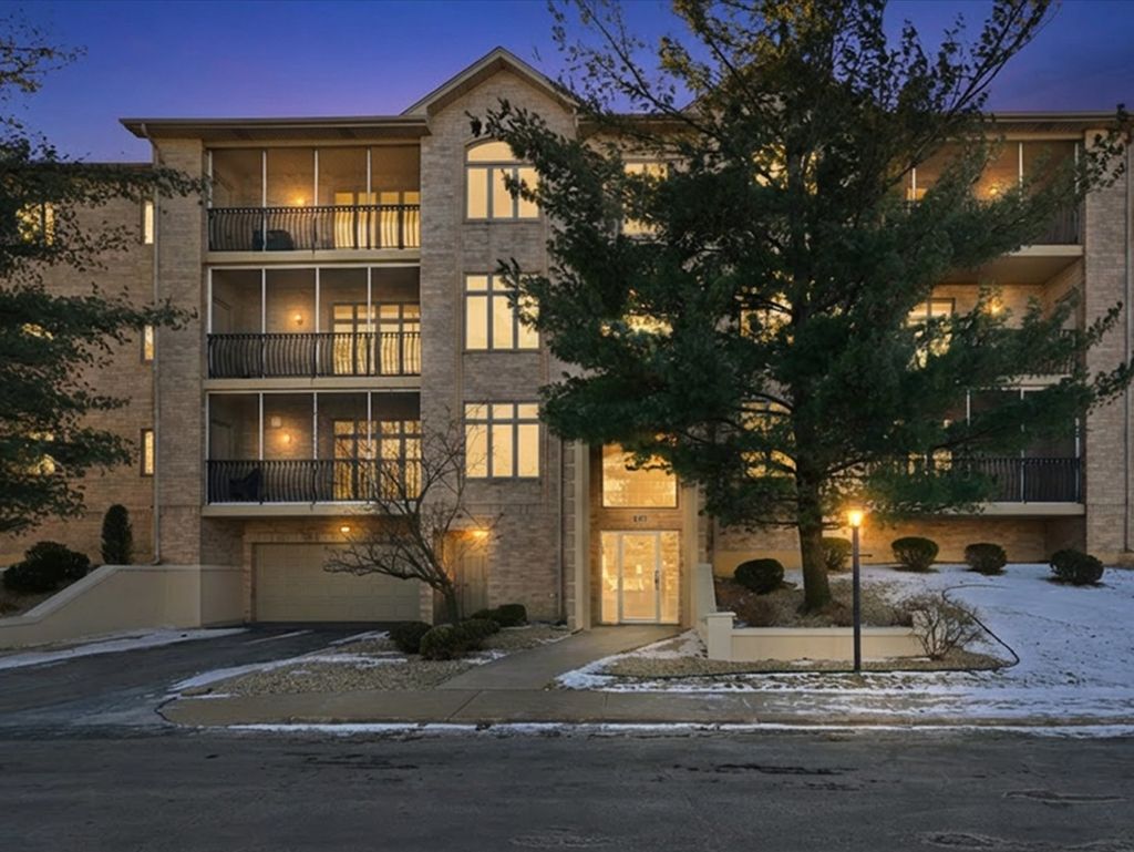 Enjoy effortless living in the highly sought-after Pines of Tinley Park-an elevator building with serene pond views and heated indoor parking. Move-In Ready comfort awaits in this beautifully maintained 2-bedroom, 2-bath condo designed for convenience and peace of mind. A welcoming foyer with two closets opens to an airy, open floor plan featuring soaring cathedral ceilings over the dining area and a bright living room with a cozy gas fireplace. The living space flows seamlessly into the enclosed screened balcony, perfect for relaxing while enjoying tranquil pond and fountain views. The kitchen offers a breakfast bar, ample table space, picturesque water views, and direct access to the balcony with a private storage closet. Both bedrooms are generously sized, including a primary suite with a large walk-in closet and an ensuite bath featuring a whirlpool tub and separate shower. This well-maintained 55+ elevator building offers a truly low-maintenance lifestyle with indoor heated parking on the main level, a secure elevator providing direct access to your floor, in-unit laundry, and abundant storage throughout. Beautifully kept common areas and hallways add to the appeal. Ideally located near shopping, dining, Metra, parks, and I-80. This condo perfectly blends comfort, convenience, and serenity-don't miss your opportunity to own in one of Tinley Park's most desirable 55+ communities!
