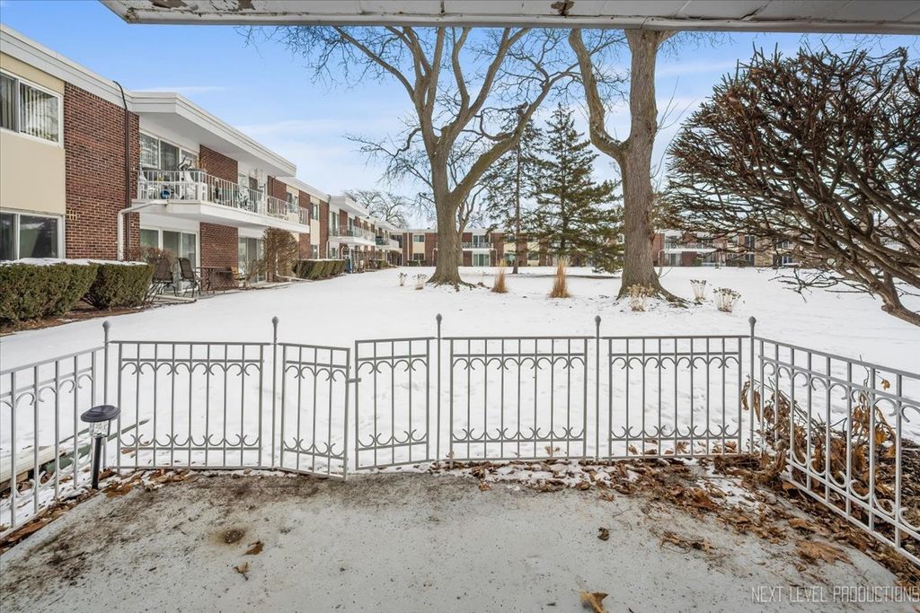Welcome home! This beautifully updated one-bedroom, garden-level condo is perfectly situated and truly move-in ready. Fresh paint enhances all living areas (excluding the bedroom), creating a bright, clean backdrop for everyday living. The refreshed kitchen features a new stove, new garbage disposal, and thoughtful updates that flow seamlessly into the living space, complemented by new ceiling fans in the kitchen, bedroom, and living room. The bathroom has been upgraded with a new toilet and new vanity with sink, while new closet doors in the bedroom and a chic barn door in the living room add both function and architectural interest. Sunlight fills the home, highlighting custom blinds in both the living room and bedroom, along with decorative sconces in the living room and bedroom that will remain, creating a warm, curated ambiance. Step outside to your private patio, enhanced with a new patio fence and gate, offering additional privacy and an extension of your living space. The patio cover is scheduled to be repainted in the spring, adding to the home's continued upkeep and appeal. The well-maintained building offers secure, locked entry doors with video surveillance, an indoor mailroom at the entrance, and a spacious lobby with a cozy fireplace. Common areas are being thoughtfully refreshed, with hallway painting underway and new common-area carpet installation scheduled to begin next week. Residents also enjoy access to a communal coin laundry room, community library, and dedicated bike storage room. Additional conveniences include off-site storage, two assigned parking spaces, low association fees, and low taxes, making this an exceptional value. Rentals are not permitted, making this an ideal opportunity for owner-occupied living. Ideally located just minutes from downtown Wheeling, with excellent proximity to Milwaukee Avenue and Wolf Road for shopping, dining, and easy commuting. Don't miss your chance to make this inviting condo your own-schedule your private showing today.