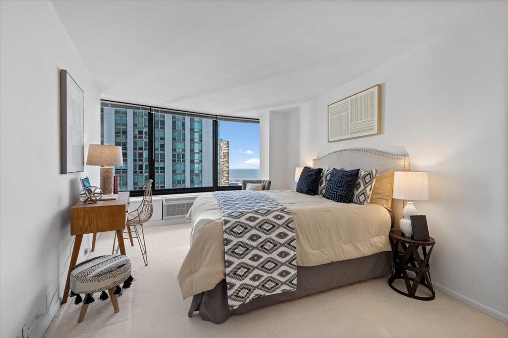 Rarely available 3-bedroom, 3.5-bath residence at Harbor Point offering breathtaking panoramic views of Lake Michigan, Navy Pier, DuSable Harbor, Grant Park, and Chicago's iconic skyline. This exceptional home features a dramatic "on-the-curve" floor plan with neutral finishes throughout, creating an elegant and timeless backdrop. The expansive living room is ideal for entertaining, complemented by a separate family room with a wet bar-perfect for hosting or relaxing while enjoying the views. Harbor Point is a full-amenity building featuring a sun-drenched pool, sundeck and patio with grills, 24-hour door staff, on-site management office, and a convenient grocery store. The state-of-the-art health club includes racquetball, pickleball and basketball court, aerobic equipment, yoga room, free weights, sauna, steam room, and locker rooms. Garage parking available; monthly rates currently start at approximately $141. Exceptionally well-managed association with over $12 million in reserves.