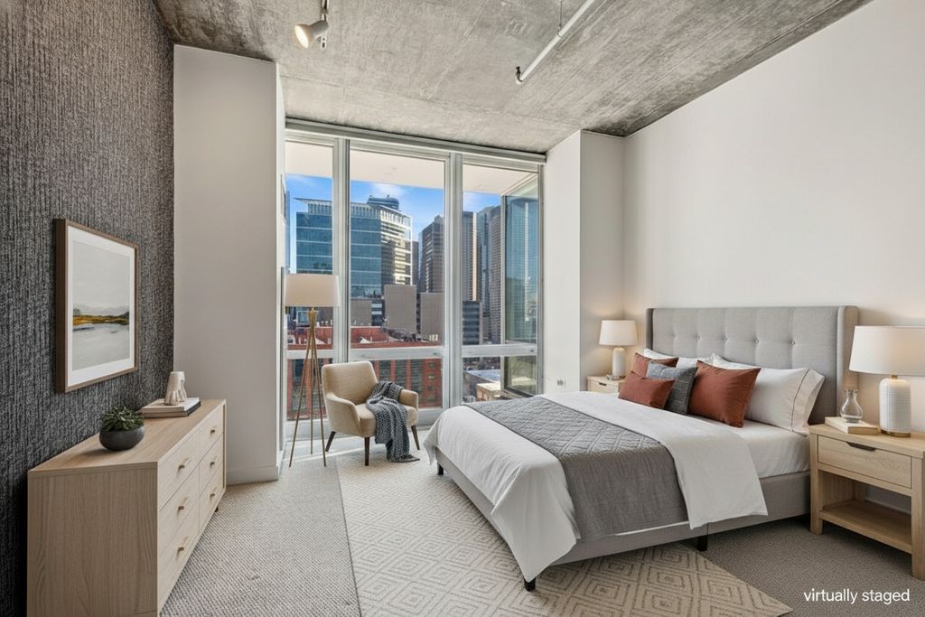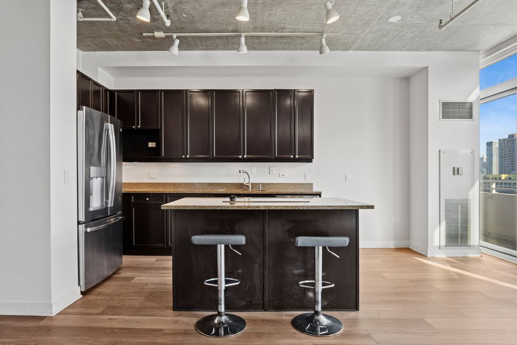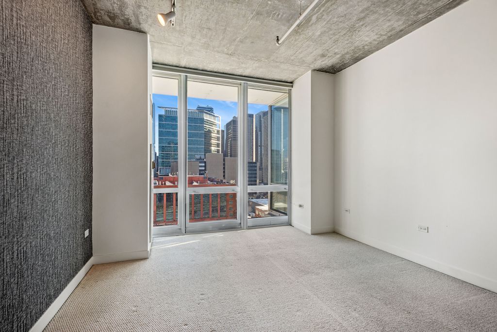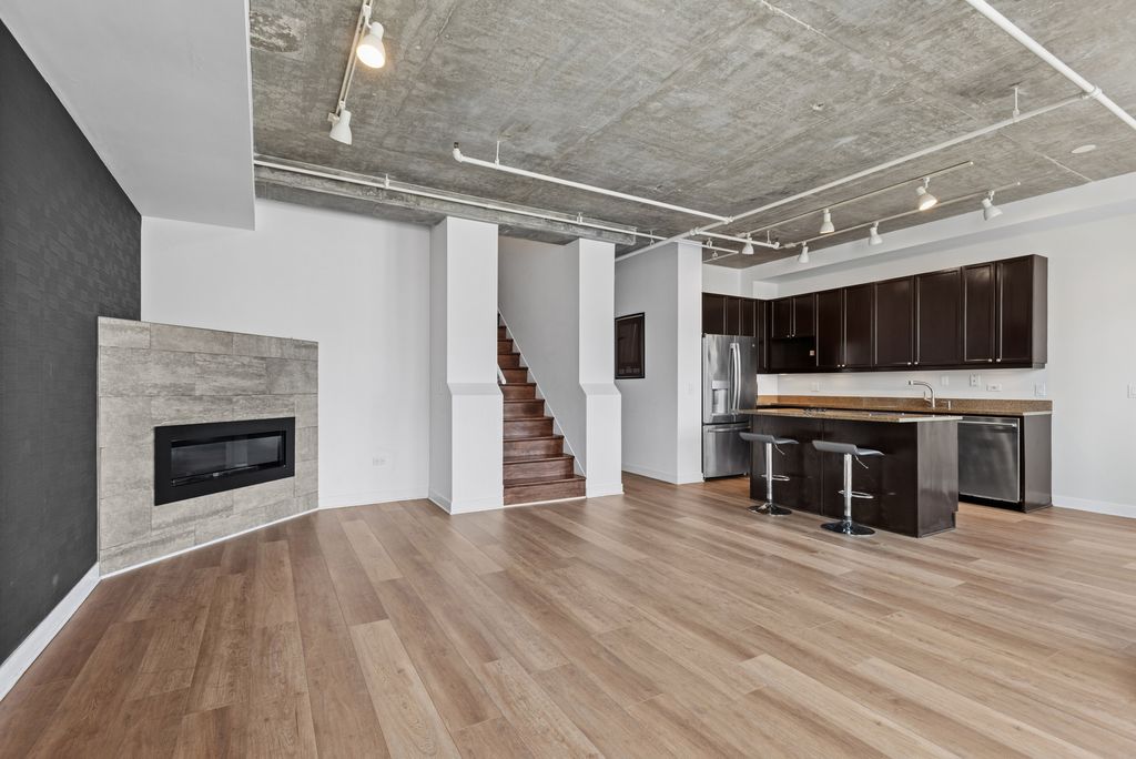 Parking space included in price! This stylish, one of a kind 2 bed/2.1 bath duplex up is located in West Loop's desirable Skybridge building. Enjoy stunning, unobstructed east-facing city views from your private balcony, living room and bedroom. Ideal open concept layout makes entertaining easy in your extra wide living-dining space. Highlighted in the living room is a corner, gas fireplace that is clean burning with remote control and exposed concrete ceiling and column (used to be popcorn ceiling). The kitchen will inspire your inner chef clad with granite countertops, expansive island, and top grade stainless steel appliances. Both bedrooms located on the 2nd floor. The primary bedroom is your own private oasis featuring an abundance of closet space, 1 walk in and 2nd full closet plus a soundproof window. The ensuite spa like bath with double sink and shower/whirlpool tub, freshly painted. Second bedroom can be used as guest room or home office. Second full bathroom, rainfall shower head, walk in shower. Private East facing balcony with wood patio tile. Dimming switches in most rooms and great storage closet as you walk in the front door. 2026: New vinyl plank flooring on the first floor, new toilet in powder bathroom, some new painting, carpets cleaned, professionally cleaned. Other unit highlights include in-unit washer/dryer & storage locker. Pet-friendly building with great amenities including 24/7 doorman, fitness center, 36th floor-rooftop with grills and panoramic skyline views, Luxer package system, dog run. Assessment includes cable, internet, heat, and A/C. Building connected to Whole Foods, walk to Loop, access to 90-94 expressway, 20 Madison bus stops in front of building, Ogilvie train station, short walk to Randolph restaurant row, Mariano's, gyms, and everything else the West Loop has to offer!