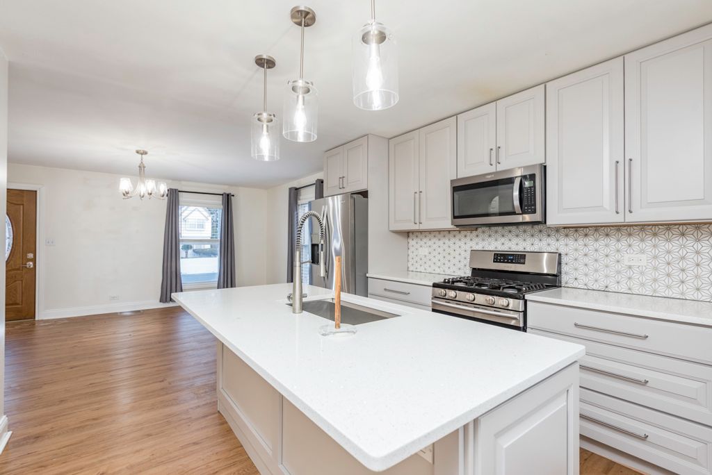 MOVE RIGHT IN! Adorable cape cod style home has been recently updated with a complete rehab. Gorgeous newer kitchen and bathroom, newer flooring and all newer windows. Super sharp and so well done, all in neutral colors with gorgeous white trim and moldings! Arched entry leads to the 2 bedrooms with spotless bath in between, hallway linen closet. Ceiling fans in every room. Gas forced air and recently added central air! The basement is large with laundry area, and open for additional living space, or leave as is, a workout room. Carefree vinyl siding on the home, and garage. This home is waiting for you! Conveniently located close to parks and schools. Public transportation is nearby (train and buses). Don't miss this opportunity, nothing to do here, move in and enjoy!