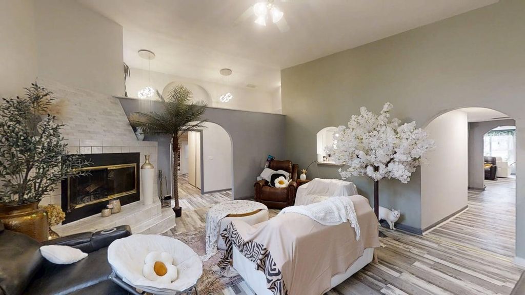 Fully remodeled and tastefully appointed, this stunning 3 bedroom, 21/2 bath home sits on over half an acre, offering space, style, and comfort inside and out! Designed with a desirable split-bedroom floor plan, this home provides privacy and functionality for everyday living. The spacious primary suite is a true retreat, featuring a brand-new, beautifully finished full bath complete with a walk-in tile shower and impressive shower head. The inviting living area showcases a cozy wood-burning fireplace, while the wet bar creates the perfect setup for entertaining guests or simply unwinding at the end of the day. Outside you'll enjoy the expansive backyard shaded by mature trees, with plenty of room to relax, garden, or play. A convenient garden shed adds extra storage for tools and outdoor equipment. This move-in ready property blends modern updates with comfortable living on a generous lot - don't miss your opportunity to call it home!