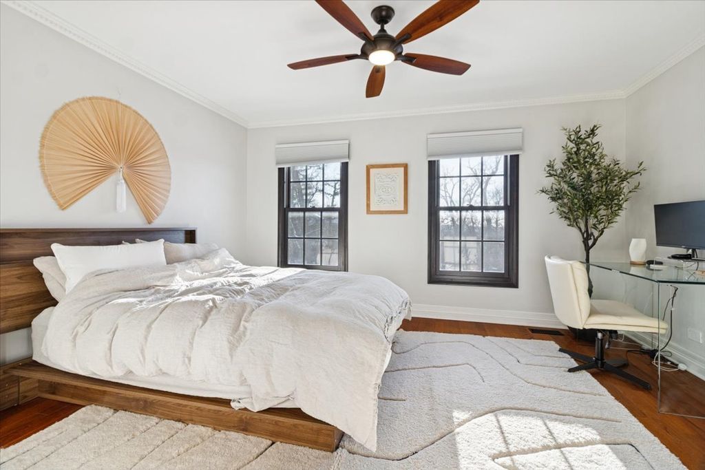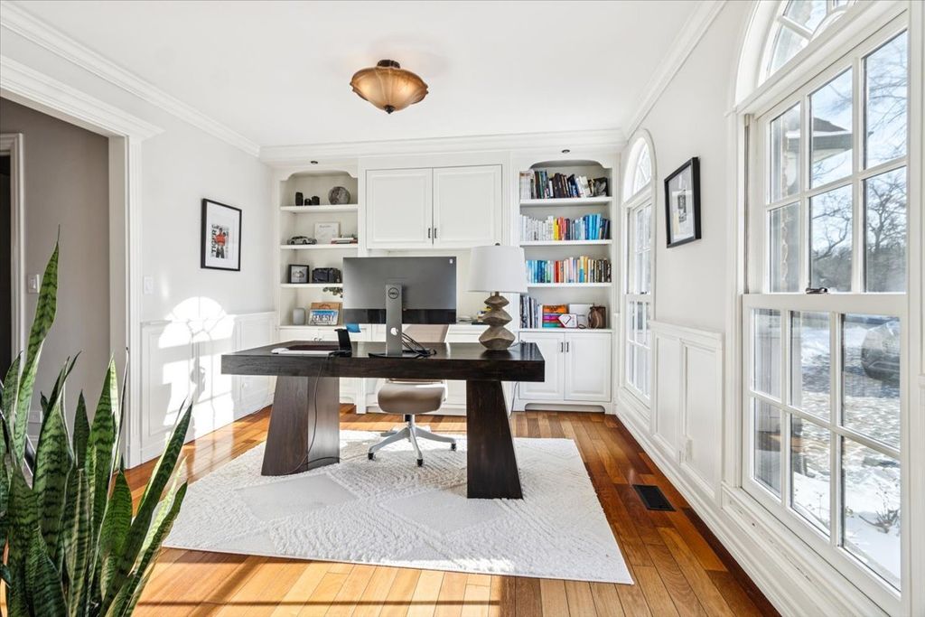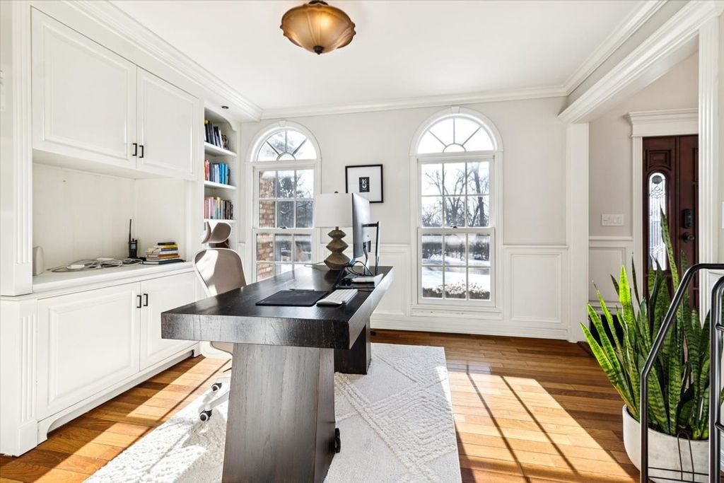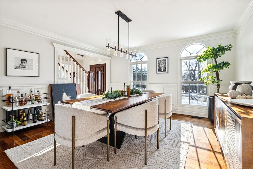 BEAUTIFUL SETTING FOR THIS CLASSIC UPGRADED HOME IN SAINT ANDREWS WOODS Charming brick driveway curved stone walk to covered front door.Dramatic open foyer cherry and white woodwork staircase and wainscoating.Living room/office with built in shelfing and storage. Large dining room, cherry floors opens to family room, has brick fireplace with wood stove insert, bay window,beautiful view of wood back yard.Upgraded kitchen quartz counter tops, stainless appliances,pantry. Breakfast area sliding doors to large deck and back yard. Powder room and laundry/utitlty room complete the first floor. Second floor master bedroom has cathedral ceilings 2 walk in closets and a fabulous master bath. Free standing tub, double vanity, luxurious shower. Two addditional bedrooms with custom walkin closets wood floors and guest bath featuring heated floors, custom marble and more. Full basement has lighting and and vynal flooring. 2 car garage has electric vehicle 240 outlet. Additional electronic devices in the home. There is a sprinkler system was never used. Beautifully landscaped and great view of sunsets year round. Most of the furnishings in the home are for sale. Multiple offers highest and best by 2/10/29 12:00 PM