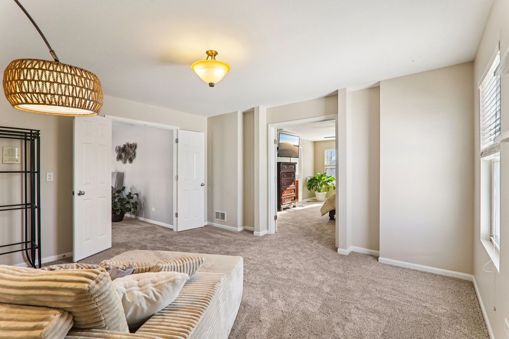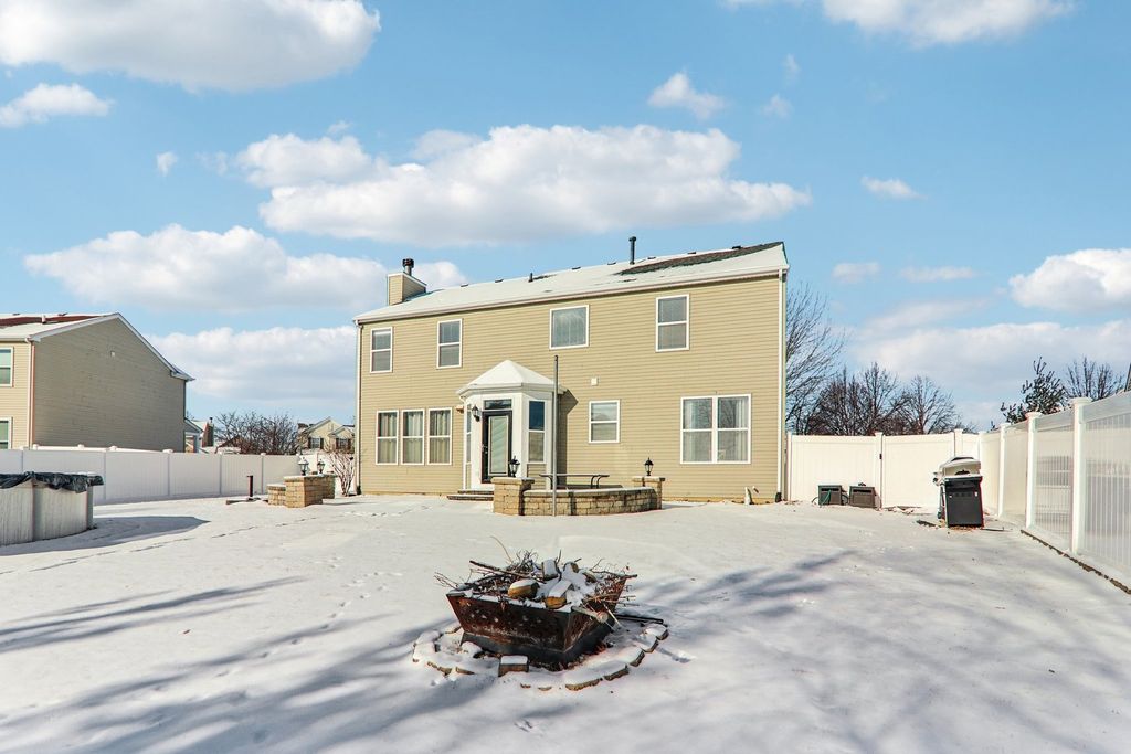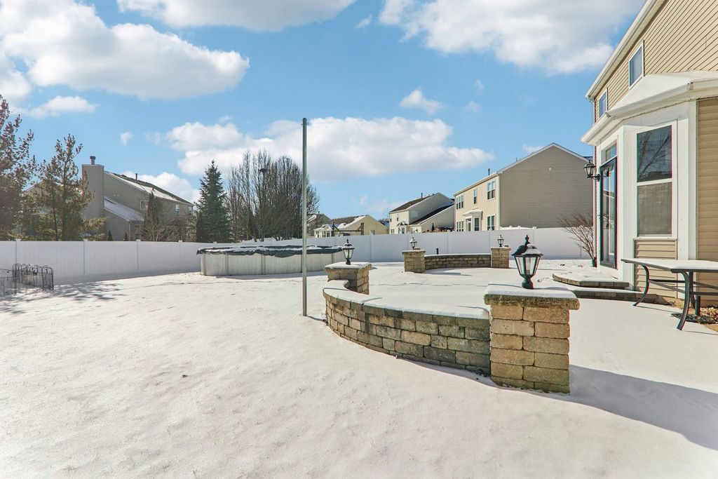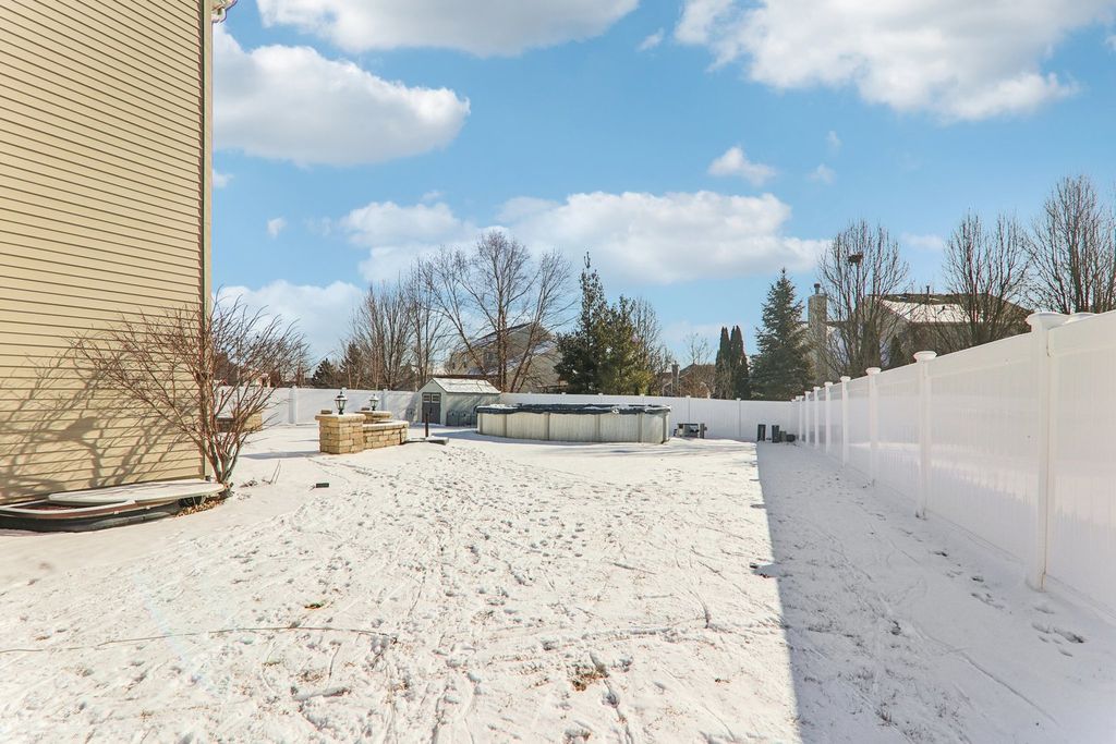 Welcome home to this Crossing at Wolf Creek gem, beautifully maintained and thoughtfully updated to offer the perfect blend of comfort and entertainment. A bright, open main level features a dramatic two-story foyer, elegant crown molding, a main-floor office ideal for today's work-from-home professional, and new carpet throughout the home. The spacious eat-in kitchen boasts abundant cabinetry and countertop space, a pantry, updated refrigerators (2024), and a new dishwasher (2024). Upstairs are four generously sized bedrooms with excellent closet space, including a private primary suite with a versatile flex area perfect for a reading nook, a large walk-in closet with organizers, and an en-suite bath with a deep soaking tub and separate shower. The finished basement is an entertainer's dream, offering a wet bar, surround sound, full bathroom, bonus recreation room, and a dedicated theater room with stadium seating-ideal for hosting or relaxing. Step outside to a private backyard retreat complete with a privacy fence, heated pool, and newer shed (2024), perfect for summer gatherings. Enjoy peace of mind with major updates including a new roof (2022), sump pump with backup battery (2024), and replaced screens (2023). Wonderfully located near bike paths, parks, and sports fields at Commissioner's Park adjacent to the subdivision, this home is truly move-in ready.