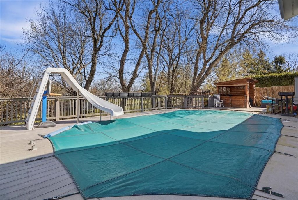 Spacious 4-bedroom quad-level home tucked away on a quiet cul-de-sac lot in desirable Lake Villa! This property features a bright and functional layout with multiple living spaces, perfect for everyday living and entertaining. Enjoy cozy evenings by the fireplace and take advantage of the versatile quad-level design offering flexibility and privacy. Step outside to your partially fenced backyard oasis backing to a serene pond, complete with a semi above-ground pool, pergola, and cabana-ideal for summer gatherings and relaxing weekends. Walking distance to charming downtown Lake Villa with shops, dining, and local events. Includes water rights to Cedar Lake for added beach enjoyment. No HOA! Seller prefers a first week of June closing. A rare opportunity to own a home with space, privacy, and location all in one. (Pool Liner needs to be replaced)