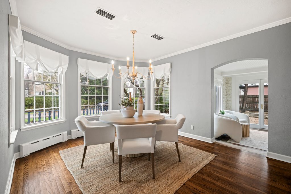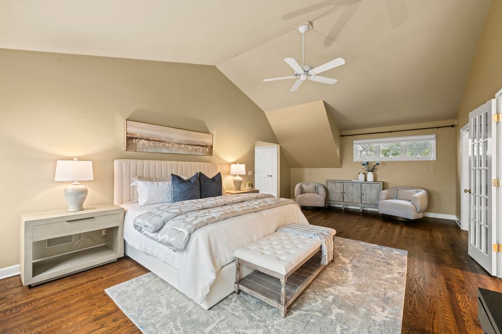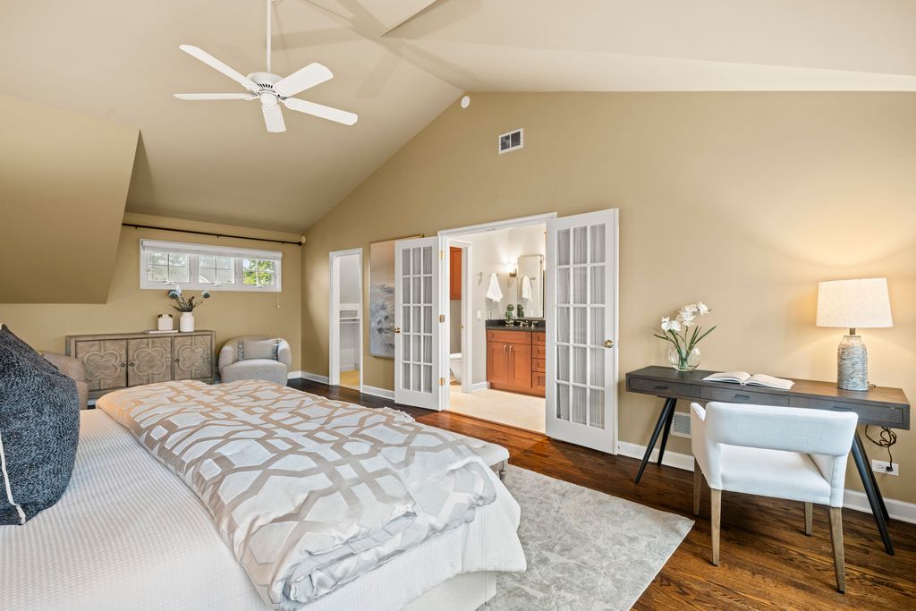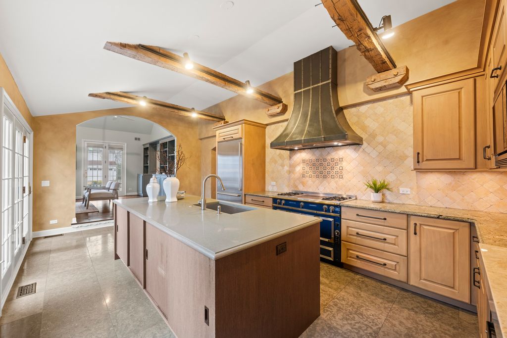 Tucked one house from Lake Michigan in East Lake Bluff's most coveted enclave - where the original Lake Bluff Artists' Colony once thrived - this storybook cottage delivers the rare combination of historic charm, designer finishes, and walkable lakefront living. This beautifully updated vintage home radiates character from the inside out and is much bigger than it looks! Enjoy the open floor plan, soaring ceilings, refinished hardwood floors, a floating staircase, built-in bookcases, walls of tall windows, and French doors that fill every room with light. A first-floor sunroom and dedicated office add flexibility, while second-floor laundry adds convenience. The chef's kitchen is a showpiece: top-of-the-line appliances, an exotic Wenge hardwood island, custom alder cabinetry, and granite and marble pastry countertops. The spacious primary suite occupies a large portion of the second floor, anchored by a luxury stone bathroom with Ann Sachs tile, an exquisitely designed walk-in shower, separate soaking tub, and dual mahogany vanities. The finished basement offers a flexibility with room for fourth bedroom or home gym, third full bath, wine cellar, and storage. Enjoy lake breezes and the sound of waves from your private stone patio, steps from Sunrise Park and direct access to Lake Michigan.