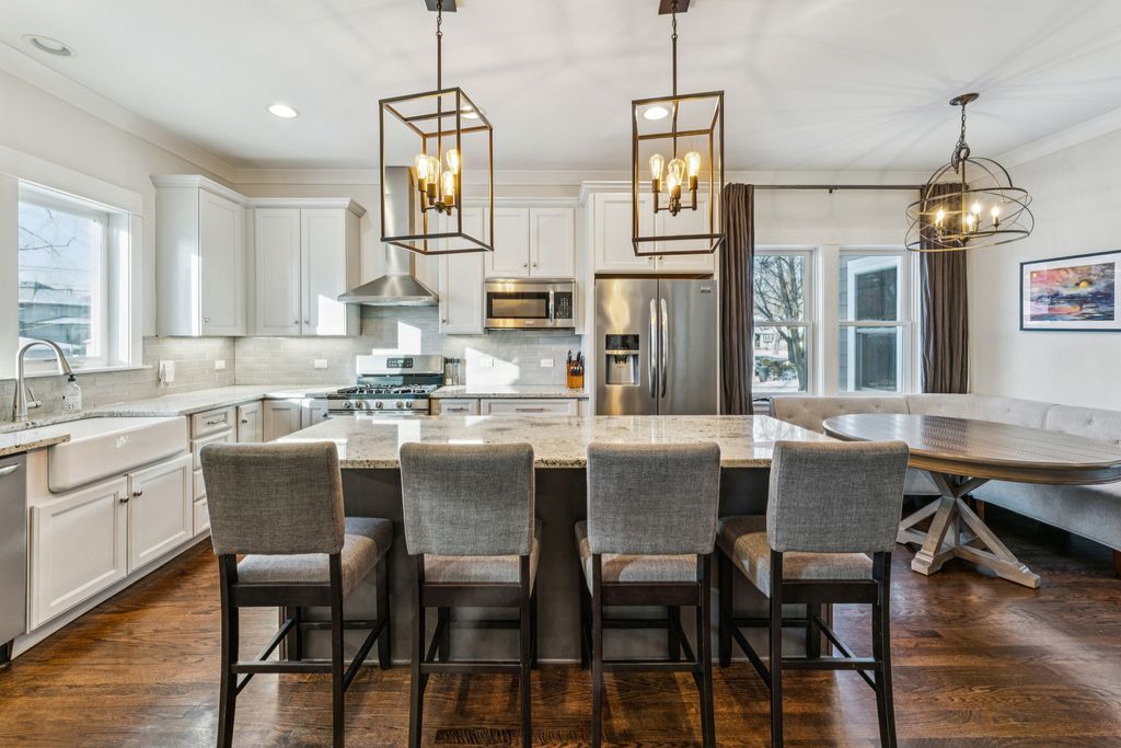Beautifully updated home in the sought-after Lincoln Elementary School District offers modern luxury and unbeatable convenience. A 2017 second-floor addition makes much of the home feel brand new, along with newer roof, windows, furnace, and updated systems. Features include an EV hookup, power-vented attic, and an oversized, newly rebuilt two-car garage designed for large vehicles and extra storage. The open-concept main level is an entertainers DREAM perfect for hosting, featuring a chef's kitchen with island seating, casual and formal dining areas, family and living rooms, powder room, and a thoughtfully designed mudroom. Upstairs offers four spacious bedrooms, including a stunning primary suite with custom bath and walk-in closet, plus second-floor laundry. The finished basement adds a family room, full bath, guest room, and ample storage. Set on a sunny 40x147 corner lot, this move-in-ready home is steps from Lincoln Elementary, Rehm Park and Pool, the Oak Park Arts District, shopping, dining, and local favorites. Minutes to the CTA Blue Line, I-290, and an easy commute to downtown Chicago-this home delivers exceptional walkability, style, and location.