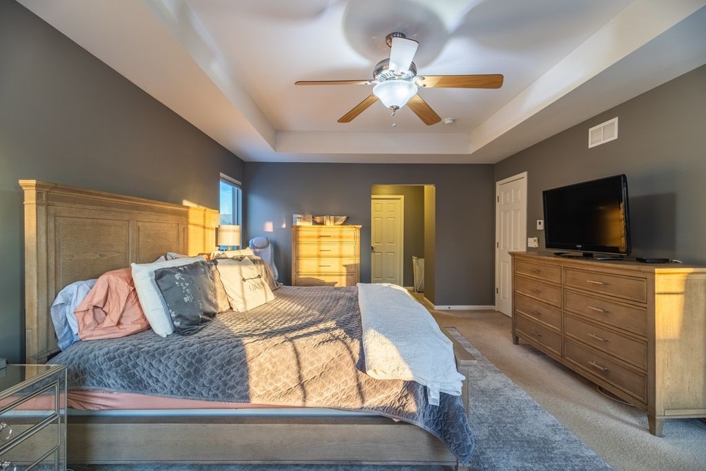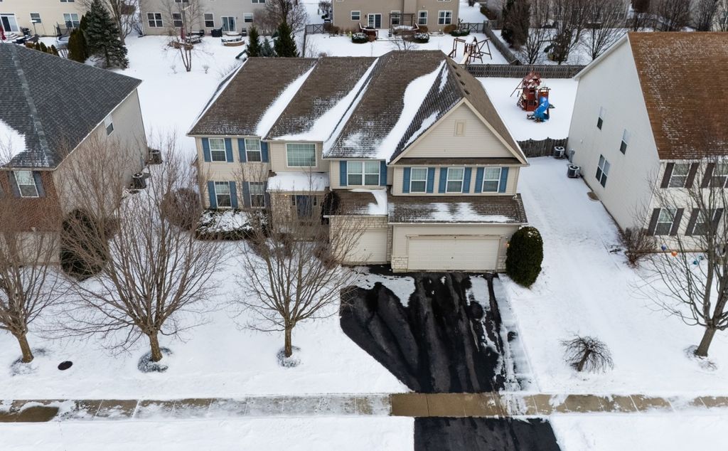 This elegant and spacious residence offers 5 bedrooms, 3 full bathrooms, and 1 half bath, thoughtfully designed for refined living and effortless entertaining. Soaring high ceilings and well-defined formal living and dining rooms create a sophisticated atmosphere throughout the main level. The home features a fully finished basement complete with a kitchenette, providing an ideal setting for hosting, extended living, or a private retreat. Recent mechanical upgrades include a dual-zone furnace system and all AC units replaced within the last two years, delivering year-round comfort and efficiency. A newly remodeled bathroom adds a modern, upscale touch. Additional highlights include a first-floor office, dual staircases for seamless flow, a well-appointed mud room, and a spacious primary bedroom designed for comfort and privacy. A finished, attached 3-car garage offers ample space for vehicles, storage, and added convenience. Outdoor living is enhanced by a newly completed patio, perfect for relaxing or entertaining in a private setting. With generous living spaces, quality updates, and a timeless layout, this home offers an exceptional blend of luxury, function, and versatility.