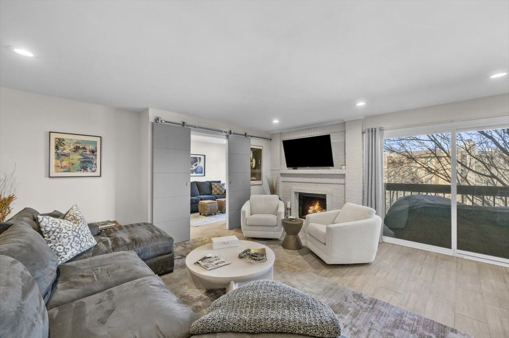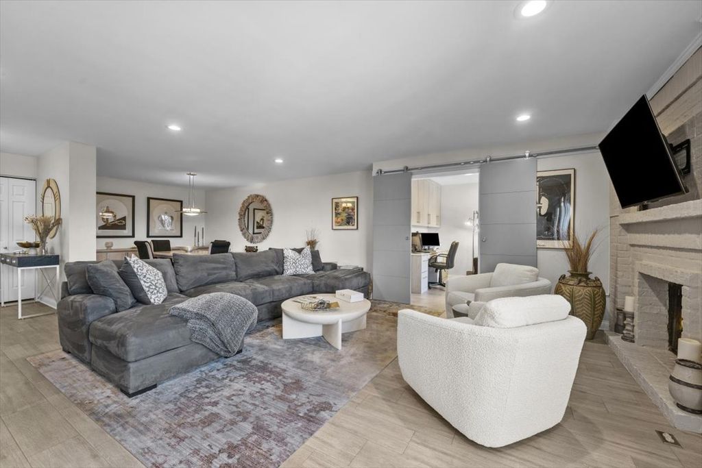 Sophisticated and beautifully rehabbed 2-bedroom, 2-bath condo with a den in the sought-after Mission Hills community. The designer white kitchen is appointed with newer stainless-steel appliances, including a double oven, curated coffee and wine bar, and extensive custom cabinetry. New sliders leading to balcony perfect for morning coffee, evening wine, or entertaining guests. The sun-filled living room is spacious and bright has a remote-control gas fireplace for effortless living. A generous sized dining room which opens into the living area with plenty of space for gatherings. A private laundry room features newer appliances for convenience. Newer windows and sliding doors enhance natural light and energy efficiency throughout. The den showcases elegant custom built-ins, ideal for a refined home office or library, stunning barn doors for privacy. Both bathrooms have been exquisitely renovated, with white cabinets, quartz countertops, and beautiful tiling, while the serene primary suite offers a generous walk-in closet with custom closet organizers. One parking spot is included, as well as a storage unit on the same floor. Impeccably maintained and thoughtfully designed, this exceptional home shows beautifully and is truly turnkey ready, nothing to do but move in and enjoy! 24-hour gated community, 6 pools, on-site management, walking path. Agent is related to Seller