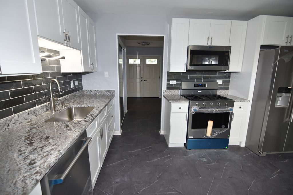 2500 Sq.ft. Split Level (4) Bedrooms (3) Bathrooms with maintenance free exterior, including a NEW roof - Updated kitchen with NEW custom slow close cabinets and NEW granite counter tops - All NEW vinyl flooring floor thru out the front entry foyer and kitchen - All NEW flooring thru out the entire house- Living room with brick fireplace, Formal dining rm off kitchen with accented mirrors - Huge NEW freshly carpeted recreation room in basement with all NEW full bathroom added with NEW ceramic flooring & enclosure - Bedrooms with NEW carpeting , ceiling fans - Two bedrooms with walk in closets - All NEW (6) panel doors and Bi-fold closet doors in bedrooms too NEW double entry doors- NEW hot water heater - NEW central air to be installed prior to closing - Entire home freshly painted - Fast immediate possession available - FHA VA all Welcome