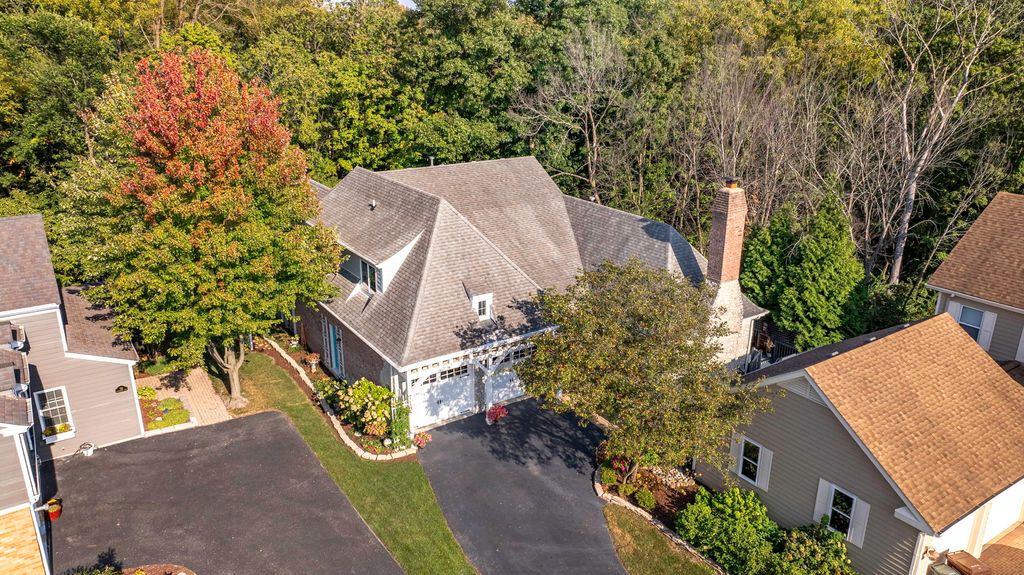 Once you arrive at this stunning French Country two story, nestled in a gorgeous wooded setting, you'll never want to leave. It offers the perfect blend of comfortable elegance, designer styling and serene privacy. Located in the desirable New Frankfort Settlement gated subdivision, this 3 Bedroom, 2.5 Bath home features a finished Walk-Out Basement ideal for entertaining or relaxing. Walking up the brick pathway, to the covered front porch and double door entry is like stepping into the pages of House Beautiful. From the stunning staircase, rich flooring, architectural ceilings and skylights to the upgraded light fixtures and hardware throughout, you won't be able to stop smiling and imagining what it will be like to live here. Formal Living & Dining Rooms hold the promise of holiday entertaining while the comfortable and cozy Family Room with gas fireplace & adjacent finely detailed Kitchen will host casual living and parties. Loads of two toned upgraded cabinets including glass fronts and crown molding, rich counters & backsplashes, breakfast bar under pendant lighting and a huge Butler's Pantry make this a Kitchen you'll enjoy every single day! (Microwave new in 2022). Your Owner's Suite boasts updated flooring and generous walk in organized closet and luxurious Ensuite Bath. Guest Bedrooms, Den, Loft & Guest Baths also sumptuous comfort and decor. The home's outdoor spaces are as inviting as the interior with a large covered patio off the main level. The finished Walk Out Basement reveals a wonderful Rec/Family Room, Craft/Hobby Room and doors leading out to a beautiful brick paver patio surrounded by the beauty and tranquility of nature! You'll appreciate that the home offers zoned heating with dual furnaces and A/C units providing year round comfort. New Sump Pump installed in 2023 provides peace of mind! New water heater in 2020. Even the 2 car garage is enhanced by striking French provincial doors. Once you view this spectacular home, you will immediately desire to make it your own!