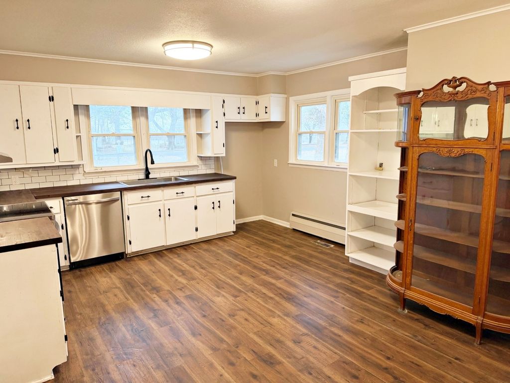 Welcome to this inviting farmhouse-inspired home offering 3-4 bedrooms and 2 full baths, set on over 1.5 acres of peaceful, open land. Blending modern updates with country charm, the home features a refreshed kitchen with brand-new appliances and countertops, perfect for gathering, cooking, and everyday living. Updated windows bring in abundant natural light, while the tastefully updated bathrooms add comfort and charm. The flexible bedroom layout allows space for guests, a home office, or hobby room. Outside, enjoy room to roam, garden, or relax and take in the quiet surroundings. A nearly 1,000 square foot, 3-car garage with one dedicated parking space offers plenty of storage for vehicles, tools, or weekend projects. This home is equipped with a whole home generator ready to go for storms and outages. With its generous acreage, thoughtful updates, and classic farmhouse feel, this property offers the perfect blend of rural living and modern convenience. **Current half bathroom sitting beside office can be converted to utility room at the seller's expense if buyer chooses. *** Photos are AI generated to give a representation of the home when furnished. ****Broker owned