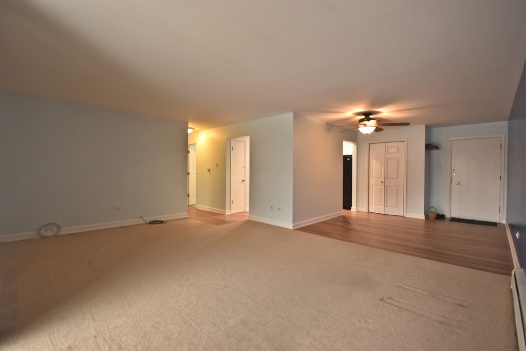 So much to love about this recently updated second floor, corner unit condo overlooking Dorhoefer Park. Bright eat-in kitchen boasting New Countertops, Raised White Cabinets and Kitchen Sink all in 2023. Also NEW Laminate Floors, Carpet, Fresh Paint, 6 Panel Doors and New Wall AC in 2023. Spacious living room with sliding glass door leading to your inviting private oasis among the trees. Plenty of space to sit and relax and/or grill your favorite meal. One of the larger units offering a separate dining room. Two generous sized bedrooms with huge wall to wall closets. Laundry area in common area provides space to store your bike and offers additional storage space. Association dues include heat, water and more ... There are two fabulous pools and one of them is heated!! Close to shopping, schools & expressways. Pace bus service near by.