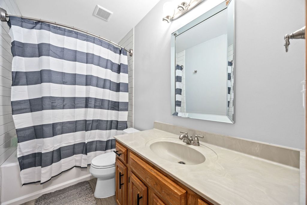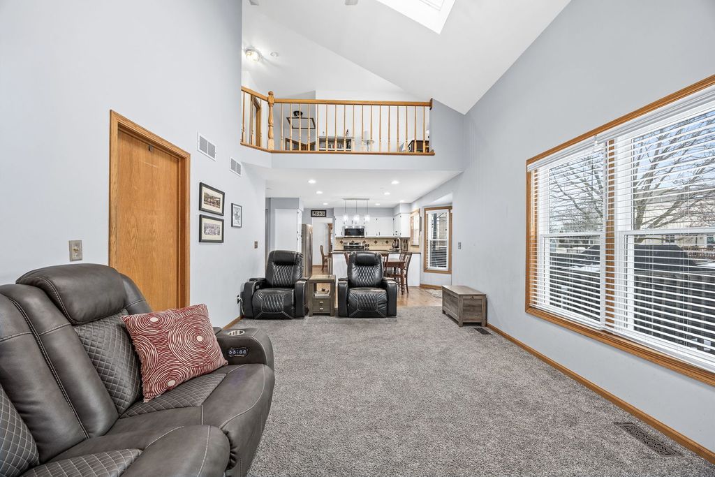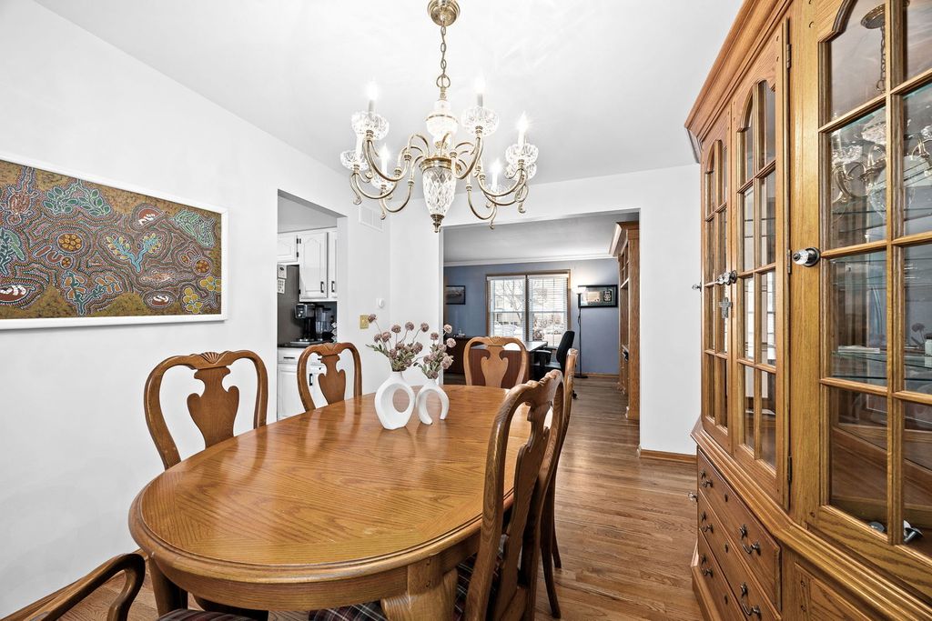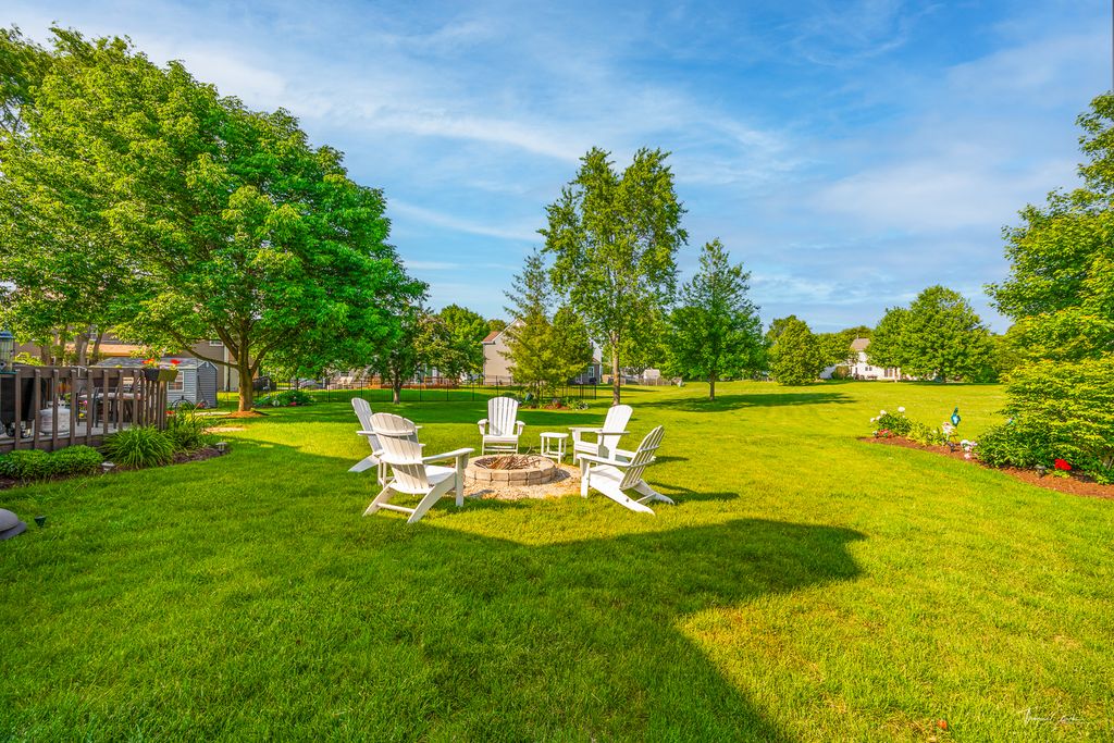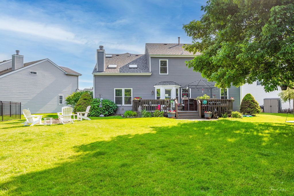 Welcome home to this beautifully updated Aurora gem, perfectly tucked away on a quiet cul-de-sac and located within top-rated Naperville District 204 schools. From the moment you arrive, the adorable front porch sets the tone for the charm and comfort found throughout this home loved and cared for by original owners! Step inside to discover stunning hardwood floors spanning the first floor, complemented by an abundance of natural light pouring in through newer windows and skylights throughout the home. The spacious living room-currently styled as a home office-flows seamlessly into the formal dining room, creating a flexible and functional layout ideal for today's lifestyle. The heart of the home features a bright kitchen with granite countertops and stainless-steel appliances, opening to a welcoming family room with vaulted ceilings and a skylight, making the space feel airy and inviting. Upstairs, you'll find four generously sized bedrooms, a versatile loft, and two full bathrooms, all thoughtfully updated and designed with comfort in mind. The fully finished basement adds incredible value with a half bath, expansive entertaining space equipped with a bar, decorative fireplace, and an additional storage room offering an impressive amount of storage. Step outside to your private backyard oasis-one of the largest premium lots in the neighborhood, backing to open space for added privacy. Enjoy summer evenings on the deck, cozy nights by the fire pit, and beautifully maintained landscaping, plus a shed for extra storage. This home truly offers space, style, and an unbeatable setting-don't miss the opportunity to make it yours. UPDATES: Roof/Siding (2017), Bathrooms (2022), Windows & Front Door (2023), Industrial vinyl plank flooring in basement & laundry room (2023), New paint in dining room, loft, upstairs hallways, and primary bedroom ( 2025).
