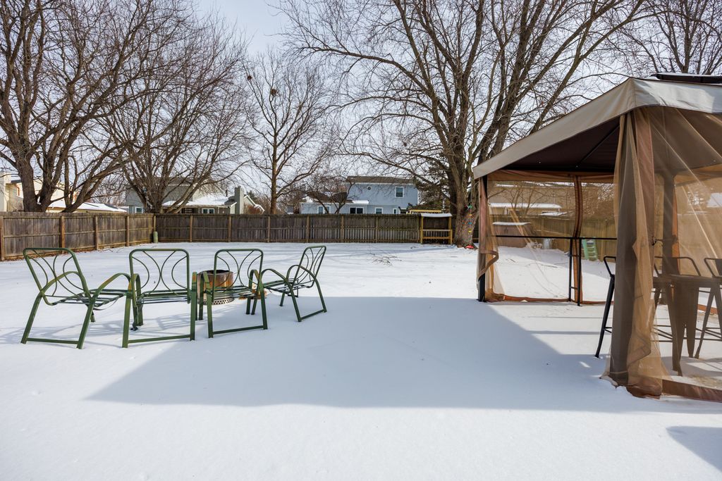 Welcome to this wonderful two-story home in Laesch Acres. Offering 3 bedrooms and 2.5 baths, this spacious and well-maintained home is move-in ready. The main level features a formal living room and dining room, along with a nicely sized kitchen that opens to a comfortable family room complete with a gas fireplace. A sliding door off the kitchen leads to a large patio and a beautiful, fully fenced backyard-perfect for outdoor entertaining. Upstairs you'll find three generously sized bedrooms, including the owner's suite with a private bath, plus an additional full hall bath. The nearly finished basement provides excellent additional living space, along with a dedicated laundry area featuring a utility sink. A heated two-car garage adds year-round convenience. This updated home offers space, comfort, and functionality-ready for its next owners to enjoy.