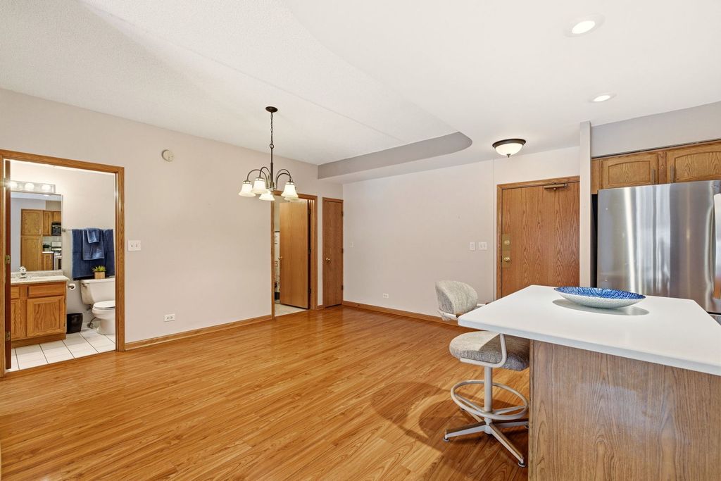 Welcome Home to the Desirable Courtyard of Harwood Heights. This Spacious Two Bedroom, Two Bath Condo is located in a Prime Harwood Heights location. This inviting condo features an open and functional floor plan with generous living and dining areas, with an abundance of natural light. The Kitchen has a Spacious Island with Seating, Newer Stainless-Steel Appliances, Newer Corian Countertop, Newer Decorative Backsplash & Recessed Lighting. The Living Room offers an Abundance of Space along with Sliding Glass Doors to the Private Balcony, overlooking the Courtyard and Gazebo. Escape to the Primary Bedroom with Oversized Walk-In Closet and Private Bath - complete with a Whirlpool Tub, Separate Shower, Dual Sink Vanity with Granite Counters and Linen Closet. The Laundry Room provides the convenience of an In-Unit Washer & Dryer. This condo has Updated Wood Laminate Flooring (2020), Updated Light Fixtures and Newer Pella Windows with an Upgraded Sliding Glass Door (2016). This condo has an assigned Garage Space in the Heated Garage along with a Storage Unit. This Courtyard condo also has an Elevator and a Car Wash in the Garage, Party Room and Professionally Landscaped Courtyard with a Gazebo. The condo is located in a well-managed building with strong reserves, offering comfortable living and a strong sense of community with well-maintained common areas and desirable amenities. Enjoy how close you will be to an abundance of Shops, Restaurants, Mariano's, Expressways, Public Transportation, O'Hare Airport and Parks. It provides all of the conveniences of urban living in a wonderful setting. It is also located in the Desirable & Highly Rated School Dst. 79 and Maine South HS. This exceptional condo presents an opportunity for low-maintenance living without compromise.