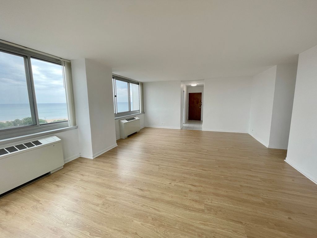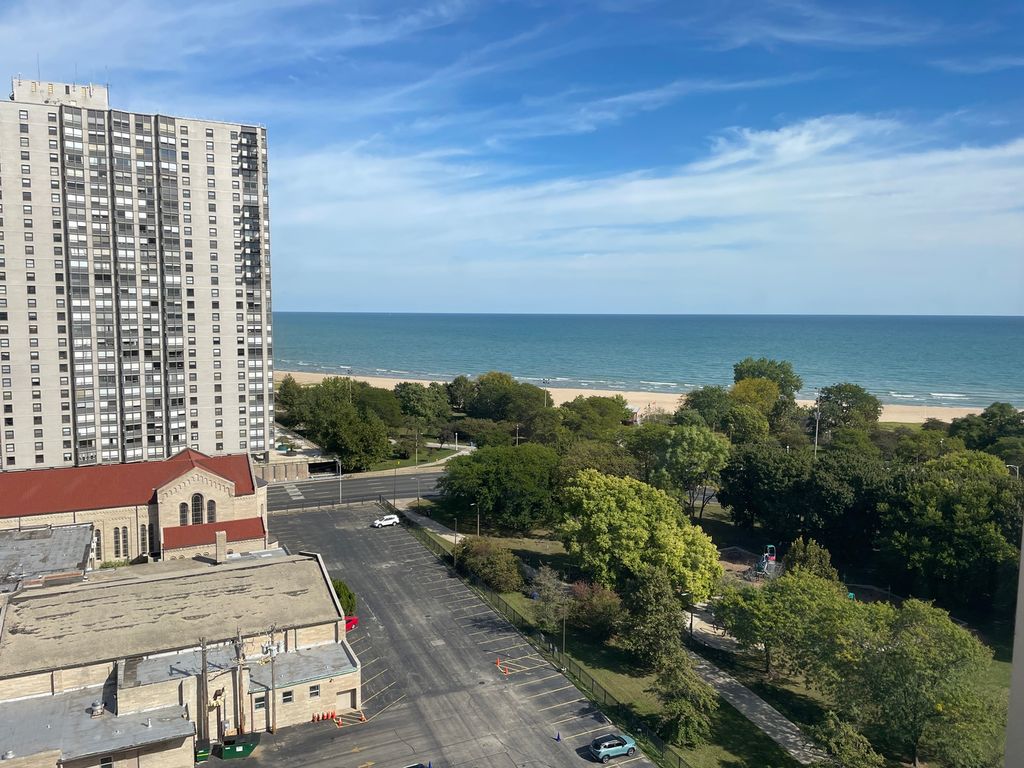 Enjoy the lake and city views from this 14th-floor light-filled condo. It features two bedrooms and two bathrooms. The east-facing living room, dining room, and kitchen provide amazing views of Lake Michigan. There is a private balcony off of the living room and primary bedroom.