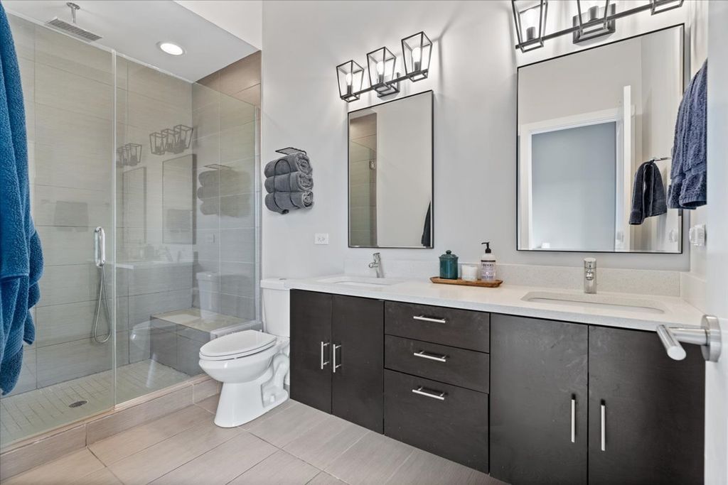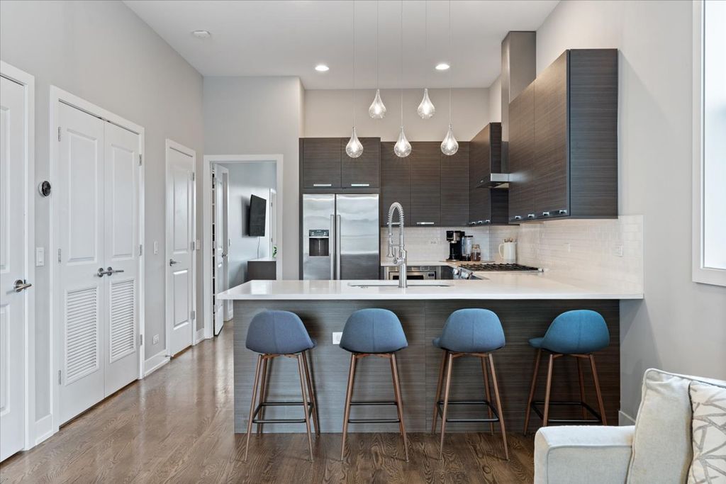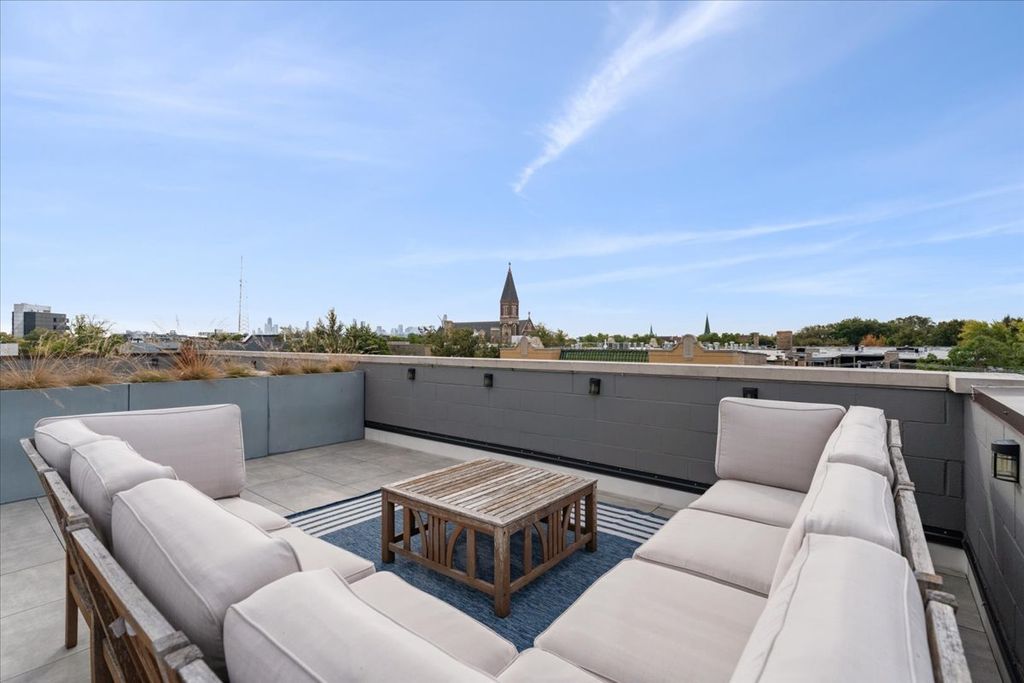 Great opportunity in the heart of Logan Square steps from Palmer Square Park and the farmer's market all Summer and the Blue Line along with everything the area has to offer! Newer construction unit features 3 levels of living with 3 bedrooms, 2.5 bathrooms and an office along with 4 outdoor spaces! This triplex unit has great natural light and the main level features an open-concept modern kitchen w/ custom flat panel cabinetry, quartz countertops, Bosch SS appliances, and white subway tile backsplash. Kitchen is open to a full - width living room and dining space w/ very high ceilings and leads out to a private balcony. This along with the powder room complete the space making it ideal for entertaining purposes. This level is also home to the side by side laundry room w/ additional storage. As you walk further you have a spacious primary suite w/ walk in closet, spa-caliber bath w/ dual vanities and heated floors and walk in rain shower w/ bench. The second private outdoor space is off the primary bedroom . As you head downstairs you have two bedrooms along w/ a full bathroom and extra storage beneath the stairs. One of the bedrooms has a private balcony as well. The top level is home to the office/den and leads right out to the private rooftop deck w/ skyline views. One garage parking space is included in the price and unit also has additional storage closet in basement. All of this just steps from shops, restaurants, the expressway, public transportation, bars, parks and more.