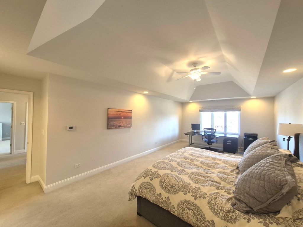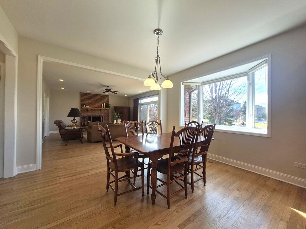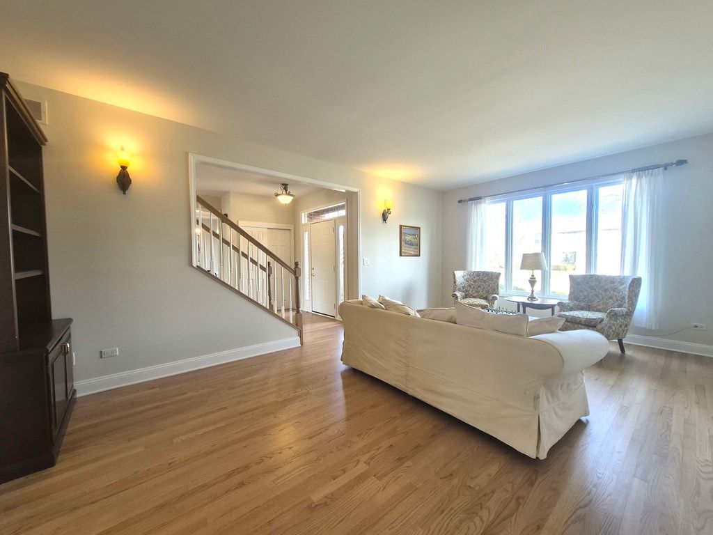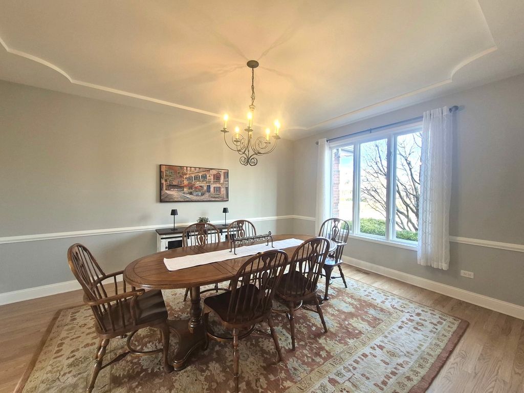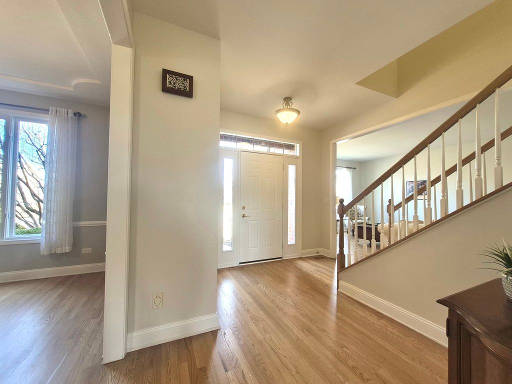 Welcome home to this beautifully appointed Frankfort residence that truly has it all. A home where thoughtful design meets everyday luxury and the features homeowners love most take center stage. The heart of the home revolves around a bright, open floor plan that creates a seamless flow for daily living and entertaining, leading naturally to a park-like backyard that offers a peaceful escape. This expansive property provides substantial living space, including five generous bedrooms and three and a half bathrooms. The primary suite serves as a true retreat, boasting high ceilings and ample space. Car enthusiasts and large families will appreciate the convenience of a four-car garage setup, featuring a practical third-car garage with tandem space for a fourth vehicle. The entertainment options extend into a full, finished basement, meticulously designed for gatherings. This lower level is an entertainer's dream, complete with a custom-built cherry wood wet bar, integrated home entertainment center cabinetry built-ins, a dedicated area perfect for a billiards table, a game table area, a fifth bedroom with a full basement bathroom-ideal for guests. Additional features throughout the home ensure both comfort and convenience. Practical amenities include 9' main floor ceilings, dual zone HVAC, back-up generator pre-wiring, a natural gas line for an outdoor grill, an expansive paver brick patio, a whole-house vacuum system, a dog run, and an inground sprinkler system to maintain the beautiful grounds. The inviting masonry fireplace with a gas starter in the family room provides a cozy ambiance for cooler evenings. The home has been diligently maintained with recent updates, including 2 new A/C units in 2023, hardwood floors refinished in 2025, and a new water heater installed in 2021. The surrounding neighborhood features parks, trails, top rated schools, and a vibrant community-enhancing the quality of life. This exceptional home seamlessly combines space, style, and thoughtful upgrades-an entertainer's dream in a highly desirable setting.