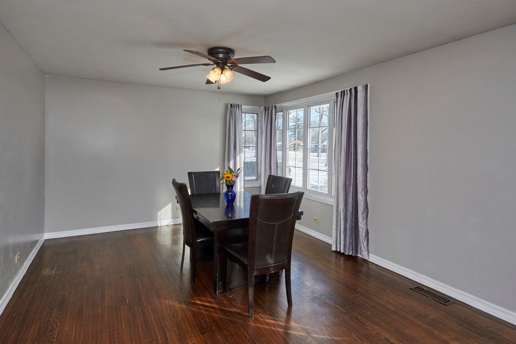 Looking for a 4-bedroom ranch in Elmhurst with a finished basement, Elmhurst schools, and modern updates under $500K? Yes-3N264 N Howard offers space, style, and walkability near elementary and middle schools. This beautifully updated ranch features an open layout with rich brown hardwood floors across the main level. The formal living and dining rooms lead into a fully renovated kitchen (2023) with granite countertops, ceramic tile backsplash, wood cabinetry, and a large island that seats four. The kitchen and adjacent family room feature brand new hardwood floors, while the mudroom and half bath have been updated with new ceramic tile. Recessed and pendant lighting add style, and the kitchen flows seamlessly into a spacious family room with a stone fireplace and sliding doors to the back patio. Three bedrooms on the main floor include hardwood flooring and nice closet space, along with an updated full bath. Downstairs, the finished basement adds valuable living space with a large rec room, bar seating, and mini kitchen with refrigerator, microwave, and sink. A fourth bedroom or private office includes two windows and a closet. There's also a second full bath and a spacious laundry room with folding table make it practical for everyday living. The oversized garage and shed for extra storage, and the long, wide driveway .All underground plumbing and the main cleanout were fully replaced in 2023. Located in Elmhurst School District and just blocks from elementary and middle schools, with parks, shopping, and expressways all nearby. This Elmhurst ranch is a rare find at $476,000.
