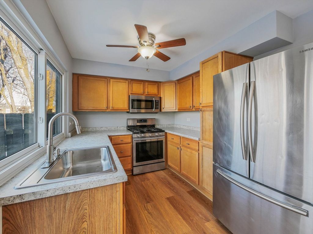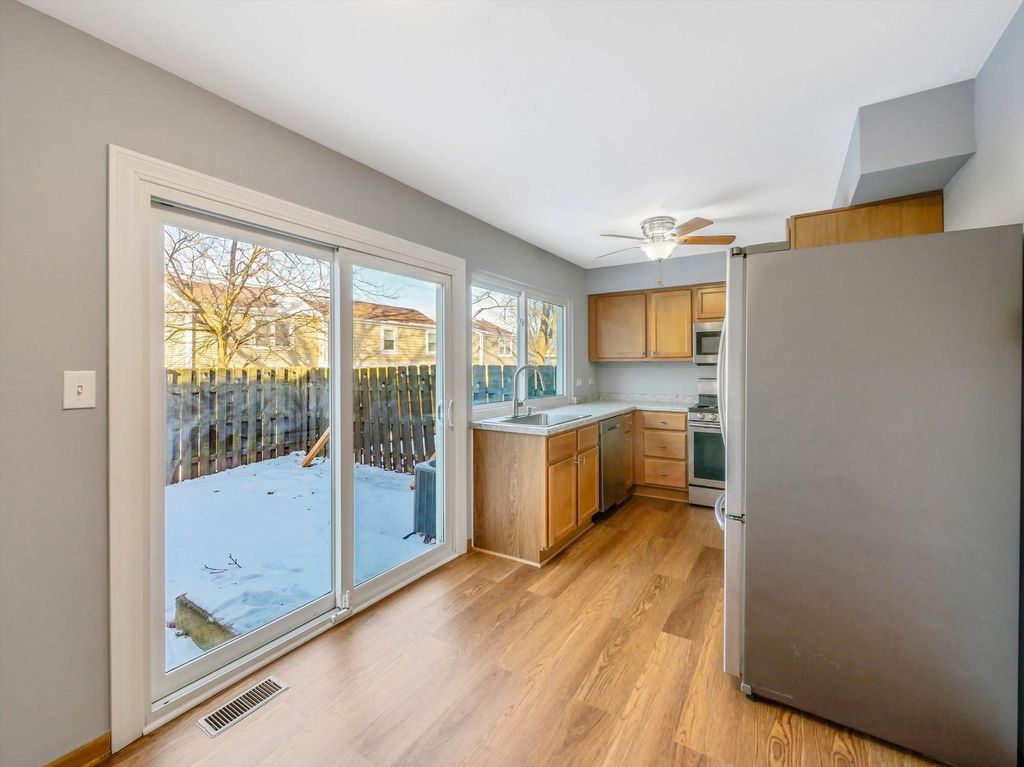 Move-in ready townhome is ready for new owners to call it home. Don't miss out on this spacious 3-story 2 bedroom 1.5 bath with private entrance, garage and yard. Home features so many upgrades. Freshly painted throughout with new flooring. Two large bedrooms with brand new carpet. Eat-in kitchen with new laminate floors. Huge living room and separate dining room. First floor with full laundry, storage and work area. 1 car garage with driveway space for 2 additional cars. Upgrades include: *2026 carpet*2026 kitchen floors*2022 Gilkey rear windows and patio door*2021 Air Conditioner*2018 furnace*2018 Samsung kitchen appliances*2000 hardwood and front windows. Prime location, close to everything. A great place to call home.
