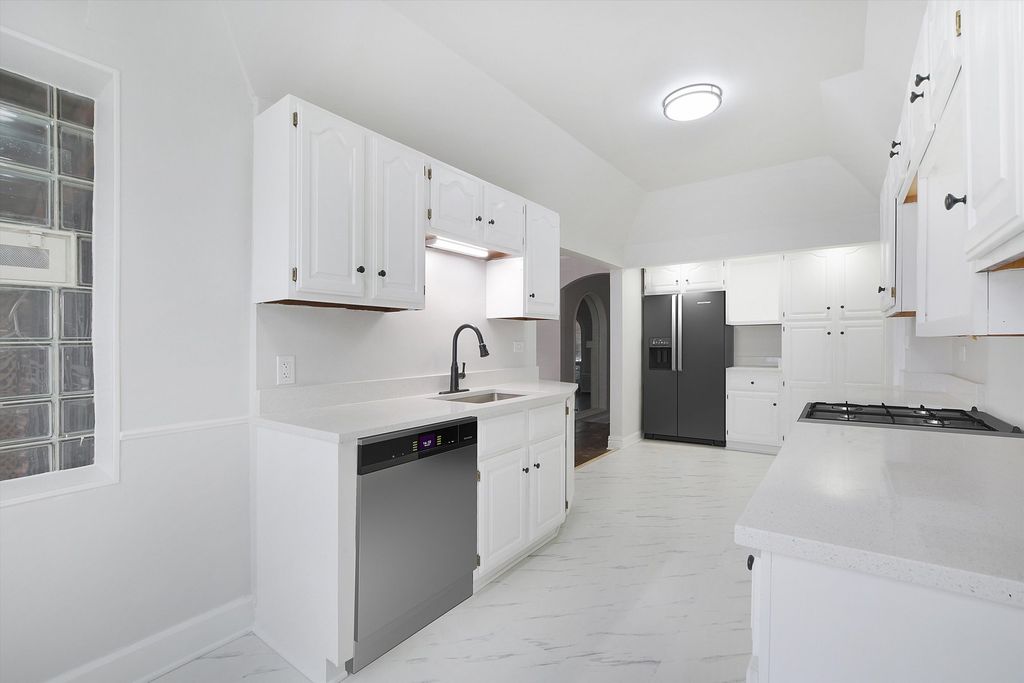 Stunning Mini Castle with Timeless Brickwork & Unique Architectural Charm This one-of-a-kind home showcases exquisite brickwork and classic architectural details throughout. The main level offers a well-appointed kitchen, a convenient half bath, a main-level bedroom, and a formal dining room ideal for gatherings. The sunken living room features elegant arched windows, creating a warm and inviting living space. Step outside to an impressive screened porch with an additional deck, perfect for entertaining or relaxing year-round. A beautiful winding staircase leads to the second level, which includes three spacious bedrooms and a full bath. The full basement provides excellent additional living and entertaining space, complete with a half bath and a bar. A truly unique property offering character, comfort, and exceptional entertaining spaces-must see to appreciate.