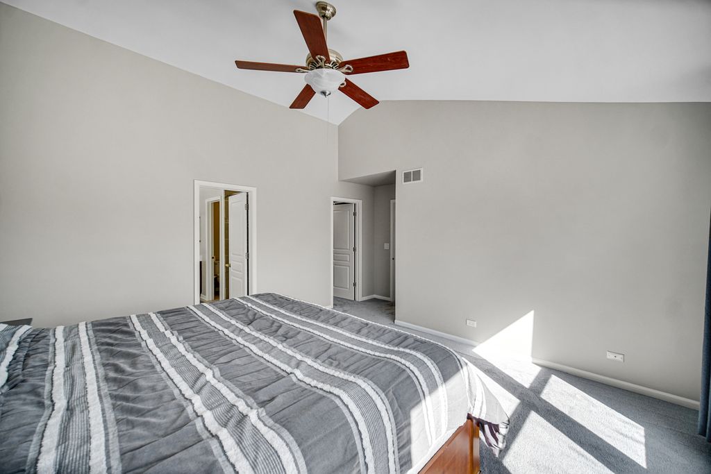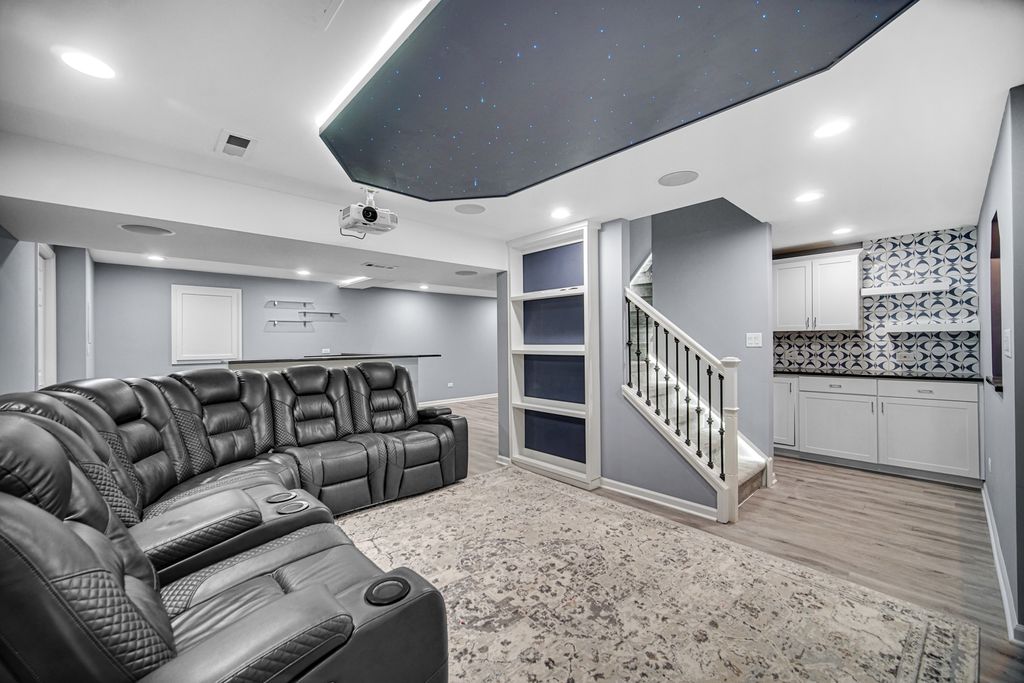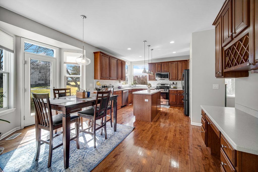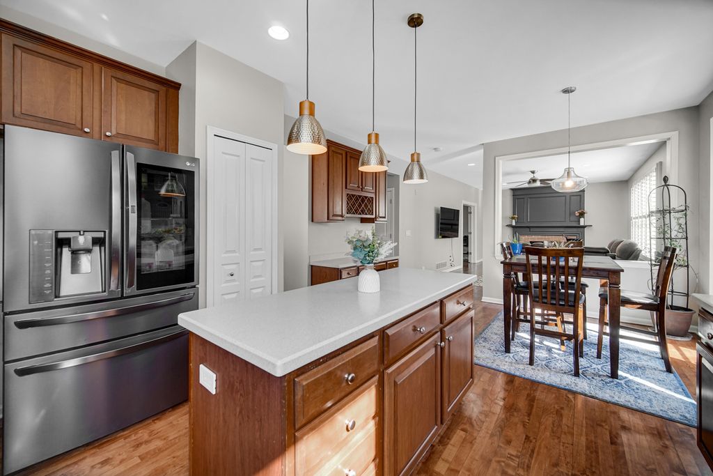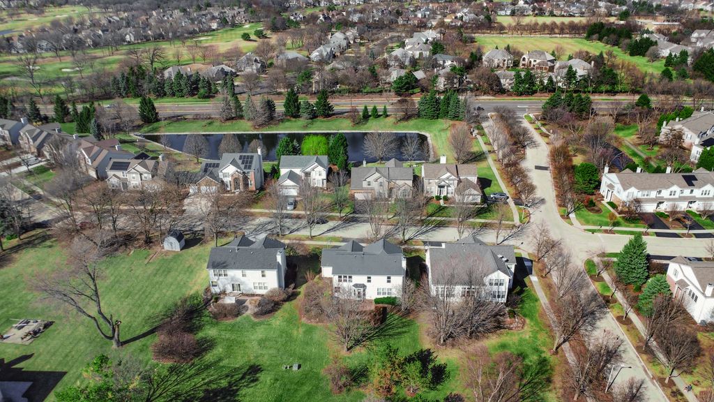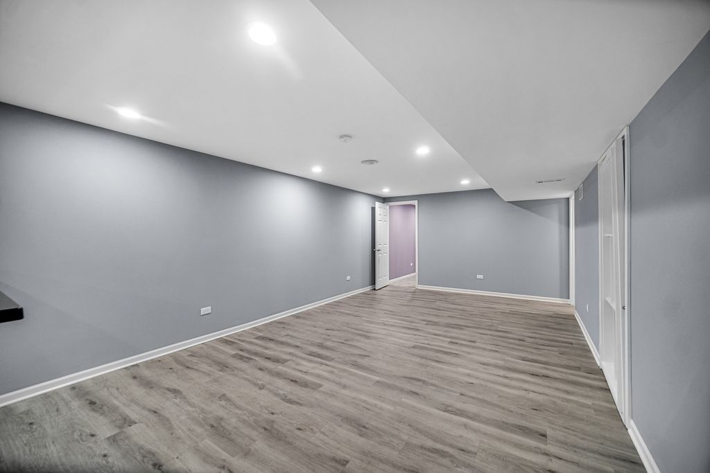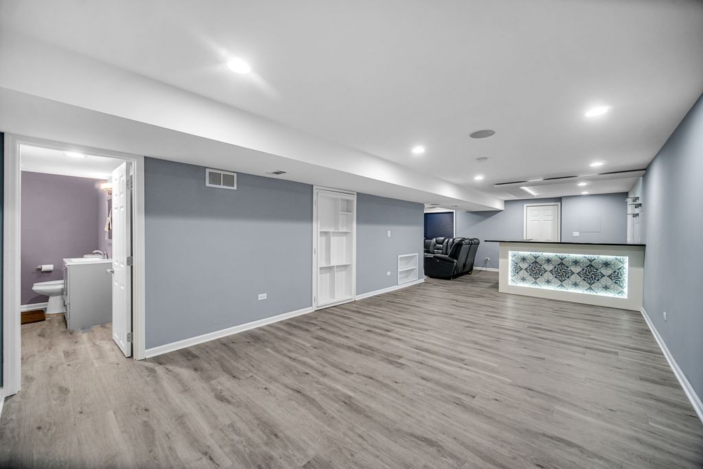 A fantastic opportunity to own a beautiful home in Country Club Village! The home welcomes you with majestic curb appeal, featuring a striking brick front and a spacious three-car garage that immediately captures your attention as you arrive. Step through the front door into a breathtaking two-story foyer highlighted by a stunning chandelier, gleaming maple hardwood floors, and an elegant maple staircase. The formal living and dining rooms are thoughtfully positioned on either side of the foyer, creating the perfect space for entertaining. The kitchen is well appointed with 42" maple cabinets, stainless steel appliances, and a beautiful center island accented by pendant lighting. The countertops and coordinating backsplash provide a neutral backdrop that complements any style. The inviting family room features a charming brick fireplace and a wall of windows that fills the space with natural light-even on the dullest Chicago winter days. The entire first floor is clad in gleaming maple hardwood flooring, adding warmth and elegance throughout. The hardwood staircase leads to the upper level, which offers three secondary bedrooms and a spacious primary suite with a vaulted ceiling. The primary bath features dual sinks, a relaxing soaking tub, a separate shower, and a private water closet. A well-organized walk-in closet adds to the suite's functionality. A second full bath and the convenience of second-floor laundry complete the upper level. The finished basement is truly a treat. It features a built-in theater system and bar, a small kitchenette, a full bath and a bedroom and a large entertainment area-perfect for gatherings, movie nights, or extended living space.