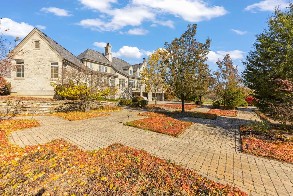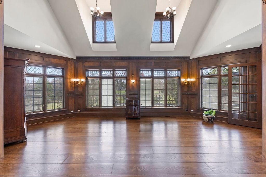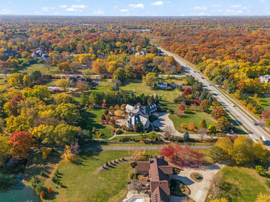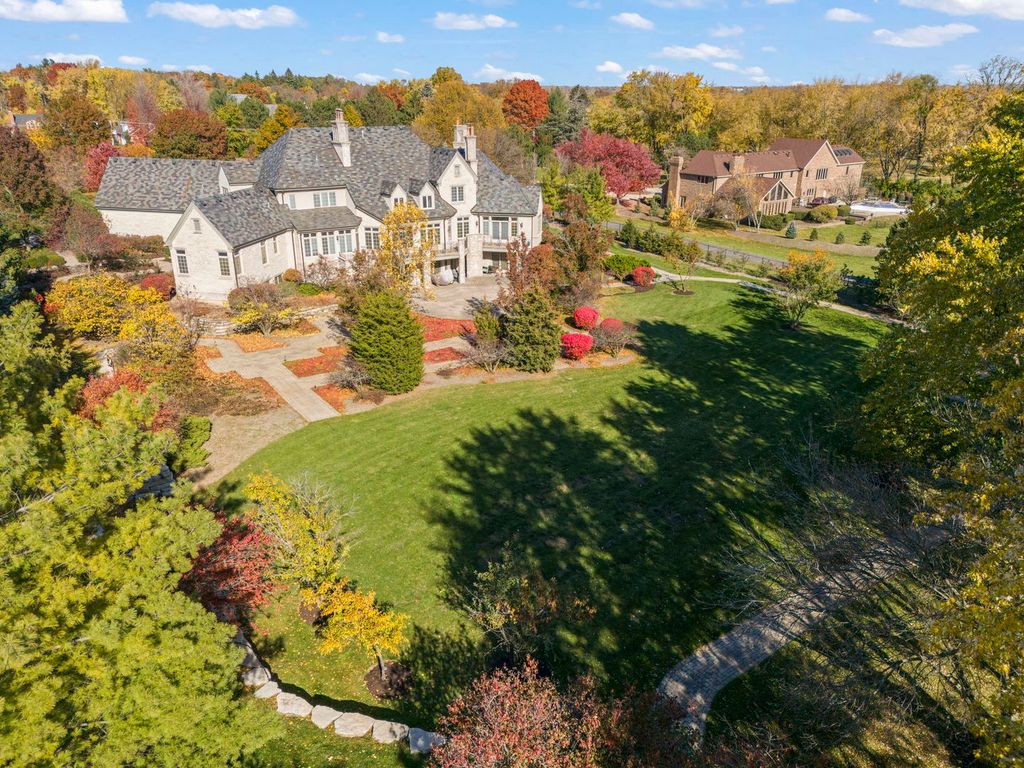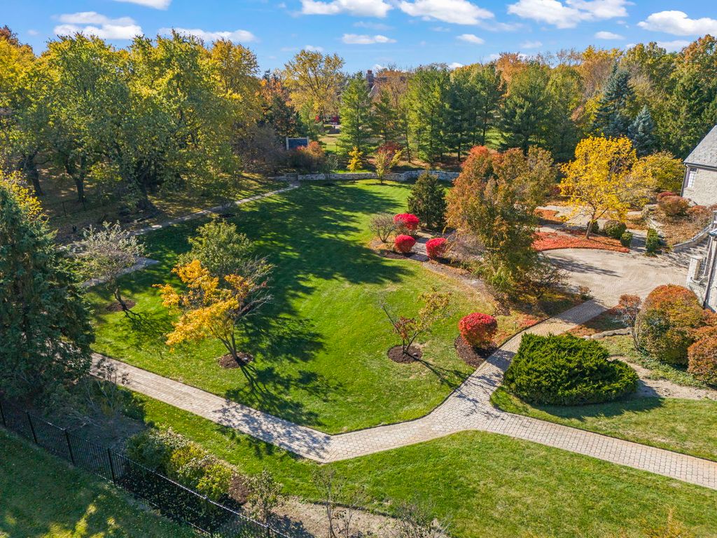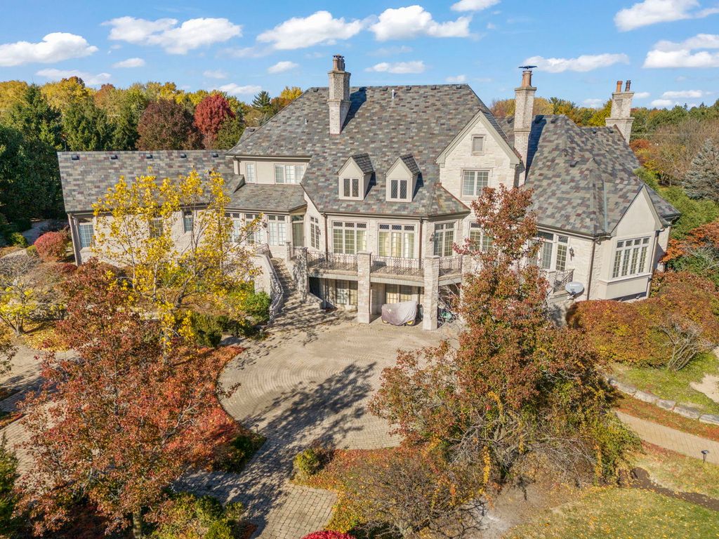 Nestled on 3 breathtaking acres of lush grounds and whimsical gardens, this impeccable Grand English Tudor Estate offers over 12,000 square feet of masterfully crafted living space. Conceived by engineer Ted Reitenbach and designed by the talented Barbara Grzelczyk, this magnificent home took three years for skilled craftsmen and artisans to create - built like no other here every detail bears witness to that devotion. A private gated entry leads to a stunning paver brick driveway with adjoining walkways and manicured gardens professionally designed, setting a grand tone before you even step inside. Step through grand 8 foot cherry wood cathedral doors into an opulent limestone foyer crowned by a breathtaking 250-pound antique chandelier with a built-in elevator mechanism for effortless elegance. Antique leaded glass windows with built-in blinds grace every first-floor window, while Pella windows with interior shades adorn the upper levels. Every hardware piece was handmade in Lithuania, and Perure hinges were selected for their unmatched Old World craftsmanship. The remaining chandeliers throughout are irreplaceable one-of-a-kind antique pieces that cannot be found or replicated, each adding timeless distinction to every space they illuminate. The formal dining room stuns with a hand-carved plaster ceiling and artisan-crafted leaded windows bathing the space in natural light. The distinguished library features soaring cathedral ceilings, custom-crafted light fixtures, and built-in cabinetry with grand mesh doors. The family room soars with 20-foot ceilings, 14 expansive windows, irreplaceable antique chandeliers, a majestic Chicago fire brick fireplace, and a dramatic second-story balcony overlook. Antique solid wide white oak floors flow beautifully throughout. Five magnificent fireplaces, every one crafted with authentic Chicago fire bricks, grace this extraordinary estate. This estate proudly features two full chef-caliber kitchens - seamlessly connected by a dumbwaiter elevator - making large-scale entertaining and multi-generational living truly effortless. The primary gourmet kitchen showcases French hand-glazed cabinetry, granite countertops, a professional Viking range with grill, griddle, convection oven and warming drawer, dual Sub-Zero refrigerators behind extraordinary handcrafted panels, and a charming limestone fireplace breakfast area. A true butler's pantry with an additional Sub-Zero walk-in refrigerator behind cherry paneling bridges the kitchen and formal dining room. Two expansive first-floor primary suites provide ideal accommodations for multi-generational living, in-law quarters, or distinguished guests. The walkout lower level is an entertainer's paradise: home theater, fitness room with sauna, wine cellar-ready room, billiards area, secret passageways, a second full chef-caliber kitchen, and generous storage. Outside, extensive patios, meandering garden paths, and enchanting landscaping create a storybook backdrop for grand entertaining, anchored by a beautifully crafted exterior storage building designed to match the manor architecture. The entire grounds are enclosed by a 6-foot wrought iron fence ensuring total privacy. Mechanical excellence includes three zoned HVAC systems a dedicated radiant heat boiler serving the basement, garage and front entrance steps, a state-of-the-art private water system, natural slate roof with copper gutters, and a smart home system. A once-in-a-generation opportunity for the discerning buyer who demands timeless elegance, unparalleled provenance, and the absolute finest in luxury living - nestled within one of the most coveted and sought-after communities in all of Chicagoland.