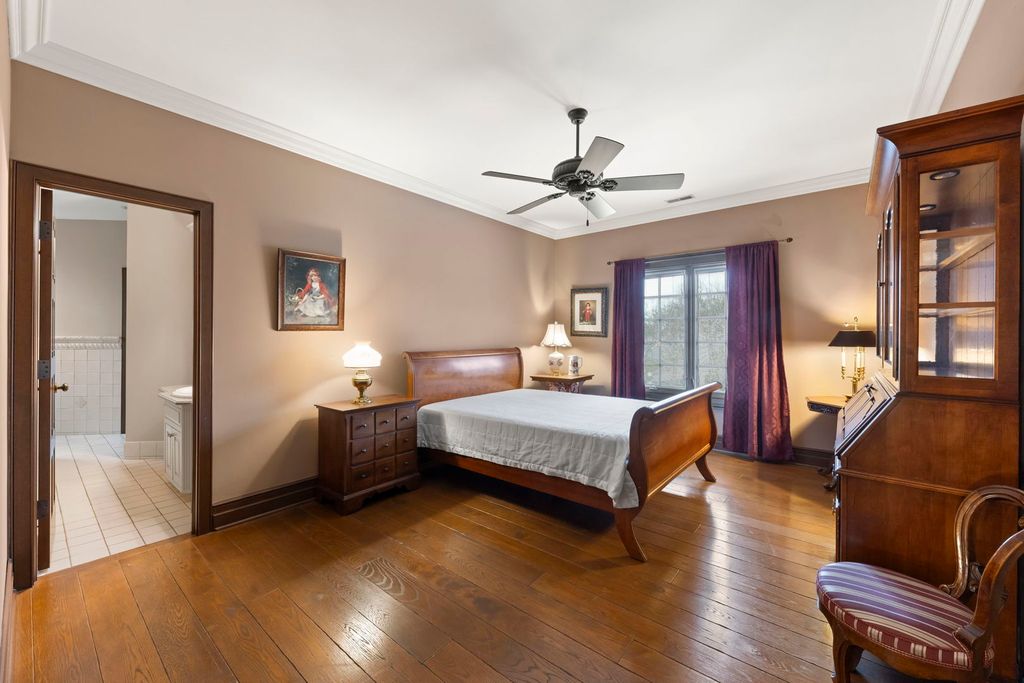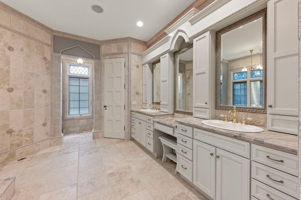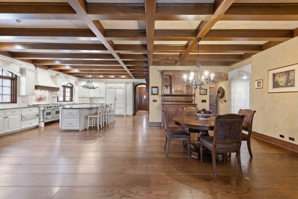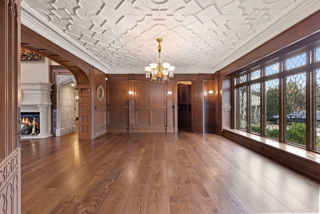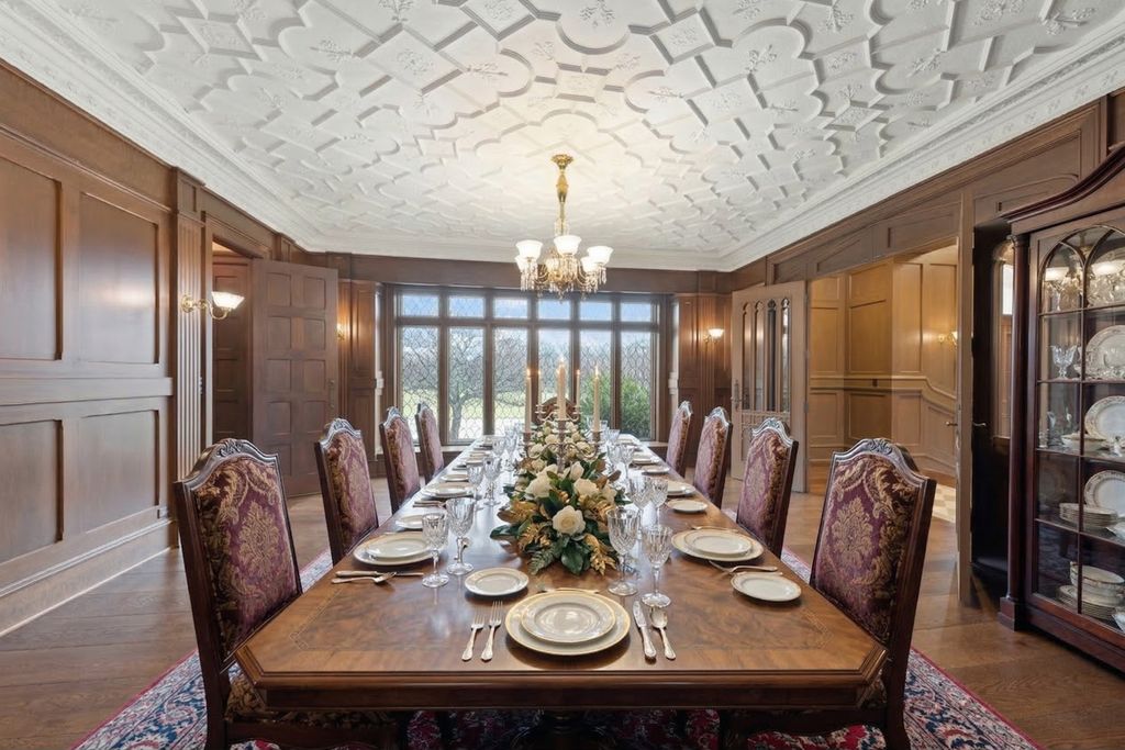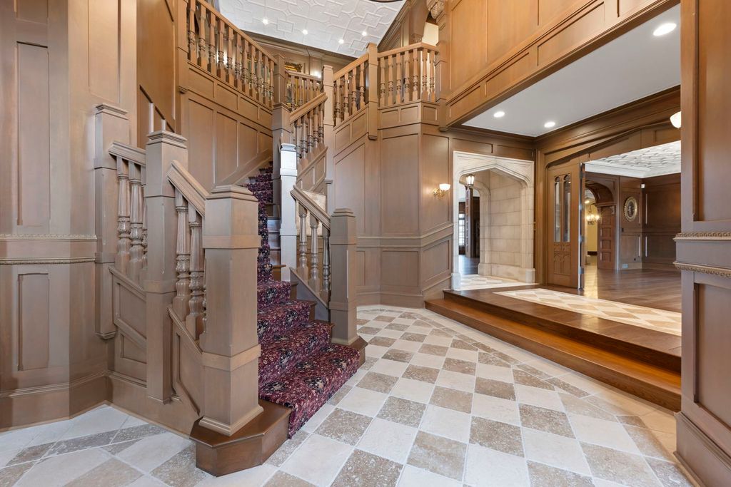 Nestled on 3 breathtaking acres of lush grounds and whimsical gardens, this impeccable Grand English Tudor Estate offers over 12,000 square feet of masterfully crafted living space. Conceived by engineer Ted Reitenbach and designed by the talented Barbara Grzelczyk, this magnificent home took three years for skilled craftsmen and artisans to create - built like no other here every detail bears witness to that devotion. A private gated entry leads to a stunning paver brick driveway with adjoining walkways and manicured gardens professionally designed, setting a grand tone before you even step inside. Step through grand 8 foot cherry wood cathedral doors into an opulent limestone foyer crowned by a breathtaking 250-pound antique chandelier with a built-in elevator mechanism for effortless elegance. Antique leaded glass windows with built-in blinds grace every first-floor window, while Pella windows with interior shades adorn the upper levels. Every hardware piece was handmade in Lithuania, and Perure hinges were selected for their unmatched Old World craftsmanship. The remaining chandeliers throughout are irreplaceable one-of-a-kind antique pieces that cannot be found or replicated, each adding timeless distinction to every space they illuminate. The formal dining room stuns with a hand-carved plaster ceiling and artisan-crafted leaded windows bathing the space in natural light. The distinguished library features soaring cathedral ceilings, custom-crafted light fixtures, and built-in cabinetry with grand mesh doors. The family room soars with 20-foot ceilings, 14 expansive windows, irreplaceable antique chandeliers, a majestic Chicago fire brick fireplace, and a dramatic second-story balcony overlook. Antique solid wide white oak floors flow beautifully throughout. Five magnificent fireplaces, every one crafted with authentic Chicago fire bricks, grace this extraordinary estate. This estate proudly features two full chef-caliber kitchens - seamlessly connected by a dumbwaiter elevator - making large-scale entertaining and multi-generational living truly effortless. The primary gourmet kitchen showcases French hand-glazed cabinetry, granite countertops, a professional Viking range with grill, griddle, convection oven and warming drawer, dual Sub-Zero refrigerators behind extraordinary handcrafted panels, and a charming limestone fireplace breakfast area. A true butler's pantry with an additional Sub-Zero walk-in refrigerator behind cherry paneling bridges the kitchen and formal dining room. Two expansive first-floor primary suites provide ideal accommodations for multi-generational living, in-law quarters, or distinguished guests. The walkout lower level is an entertainer's paradise: home theater, fitness room with sauna, wine cellar-ready room, billiards area, secret passageways, a second full chef-caliber kitchen, and generous storage. Outside, extensive patios, meandering garden paths, and enchanting landscaping create a storybook backdrop for grand entertaining, anchored by a beautifully crafted exterior storage building designed to match the manor architecture. The entire grounds are enclosed by a 6-foot wrought iron fence ensuring total privacy. Mechanical excellence includes three zoned HVAC systems a dedicated radiant heat boiler serving the basement, garage and front entrance steps, a state-of-the-art private water system, natural slate roof with copper gutters, and a smart home system. A once-in-a-generation opportunity for the discerning buyer who demands timeless elegance, unparalleled provenance, and the absolute finest in luxury living - nestled within one of the most coveted and sought-after communities in all of Chicagoland.