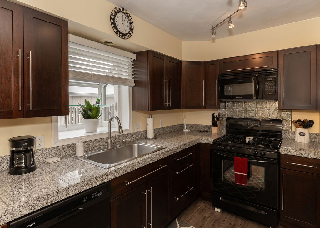 This beautiful condo offers 3 levels of living. The updated kitchen offers granite countertops, large sink plus a bay window overlooking your private patio area. All appliances stay. Dining area located off the kitchen. Large window lets in tons of natural light in the living room. Two huge bedrooms on the upper level, including a primary with walk-in closet and a second bedroom with bay window. The partially finished basement includes a finished rec room and a large laundry room with extra shower, sink, and ample storage. Pets are allowed. Features include a 2-car detached garage plus an additional parking space. Subject to seller finding home of choice