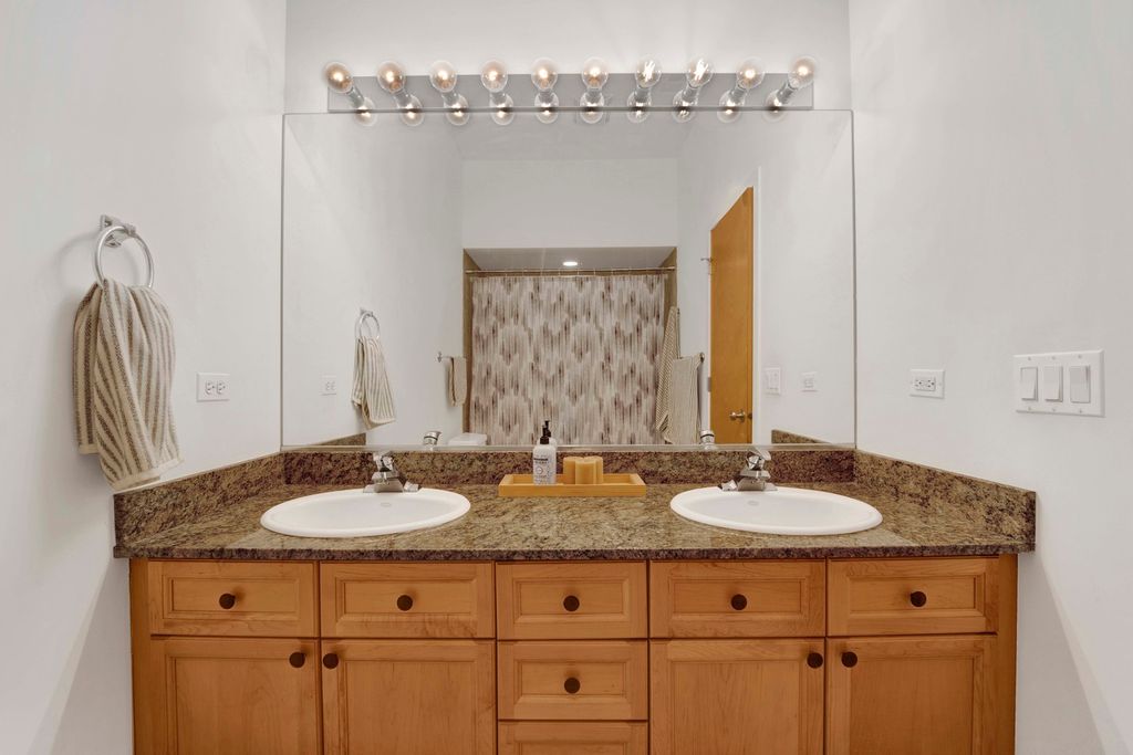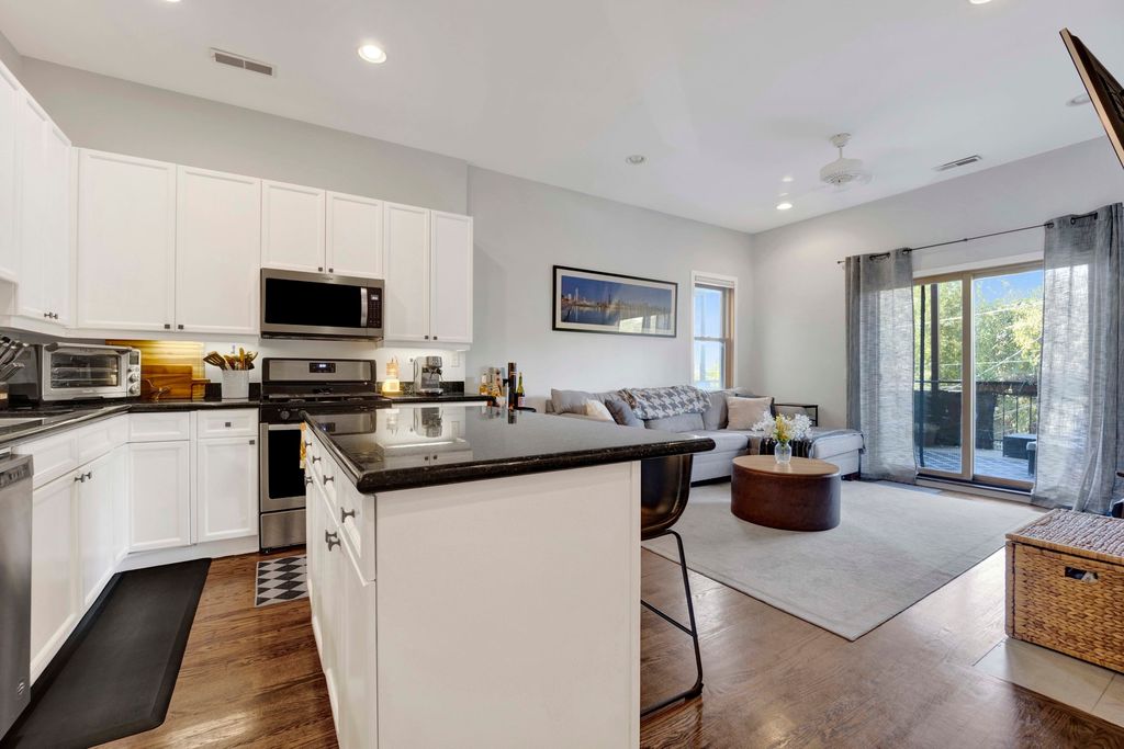 A very special offering, don't miss this pristine Lincoln Park gem, with 2 bedrooms and 2 full baths, in a quiet and convenient A+ location. The bright open concept layout includes 10 ft ceilings, hardwood flooring throughout, a spacious light-filled living space, a generous balcony, distinctive gas fireplace, a great kitchen with 42" white cabinetry, stainless steel appliances, new garbage disposal, and stunning granite counters plus island with seating. The primary suite boasts a spa-like bath with double vanity sinks, and whirlpool tub with shower. In unit washer/dryer. Well maintained all brick building with new roof in 2022 and tuckpointing in 2024. Excellent location near Wrightwood and Hamlin Parks, Midtown Athletic Club, Mariano's, Jewel, Costco, Aldi and Menards. One gated parking spot included in price. Additional storage in building.