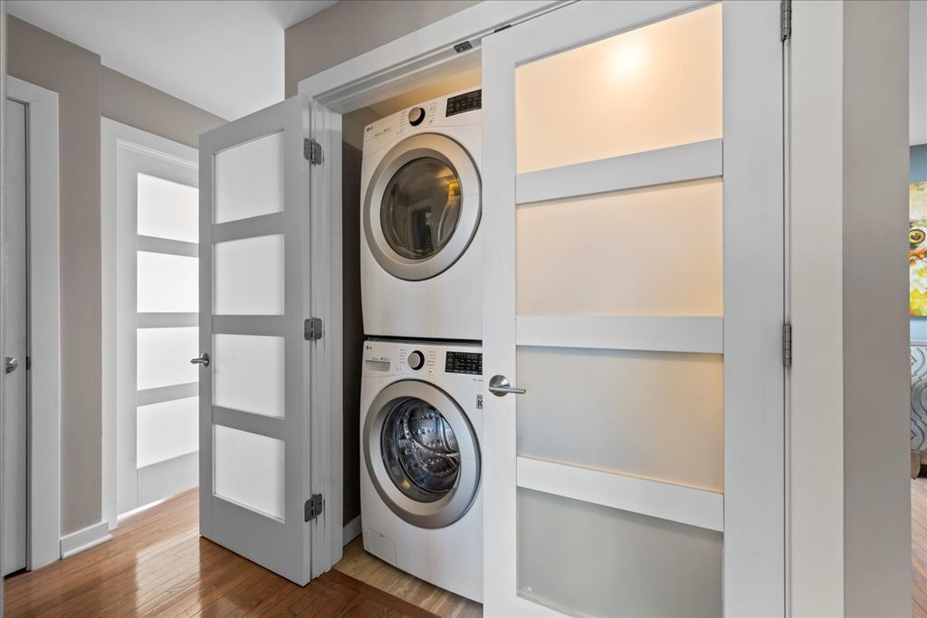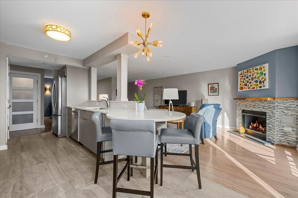 Completely and beautifully updated top-floor corner 2-bedroom, 2-bath condo in the heart of downtown Highland Park. The open-concept kitchen flows seamlessly into the living room and features custom cabinetry, designer tile, quartz countertops, and a built-in eating area. Sunlight pours into this residence, where no detail has been overlooked-new doors throughout, updated appliances, and fully remodeled kitchen and baths. The building has also seen significant improvements, including a new roof, renovated pool area and fitness room, and a new intercom system. This home offers abundant closet and storage space plus two parking spaces in the heated garage. Monthly assessments include heat, water, gas, and more. Live just steps from the train station, shops, restaurants, grocery store, movie theater, and all that vibrant downtown Highland Park has to offer. This building has a no smoking and a no rental policy.